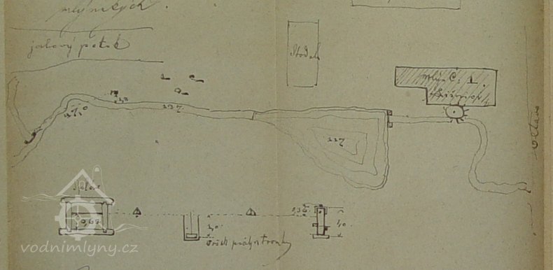 Ve vodních knihách je zmiňováno již jen jedno české složení. Na Císařském otisku jsou však namalována dvě vodní kola. To druhé u žlutě vyznačené budovy mohlo pohánět vodní pilu, která později nejspíš zanikla.
