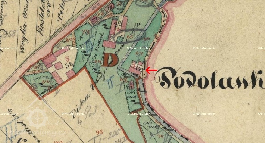Okolo mlýna vznikla v 17. století ves Podolanka. Mlýn spolu s dalším "olejným" mlýnem v Jenštejně patřil ke gruntu č. 22 v Jenštejně.