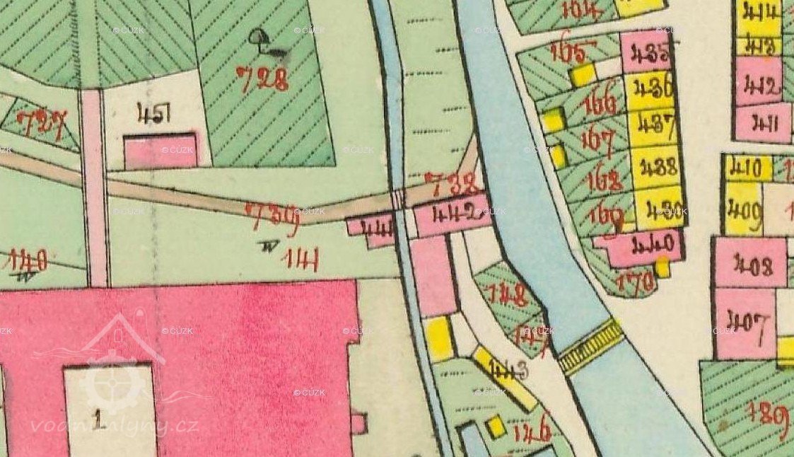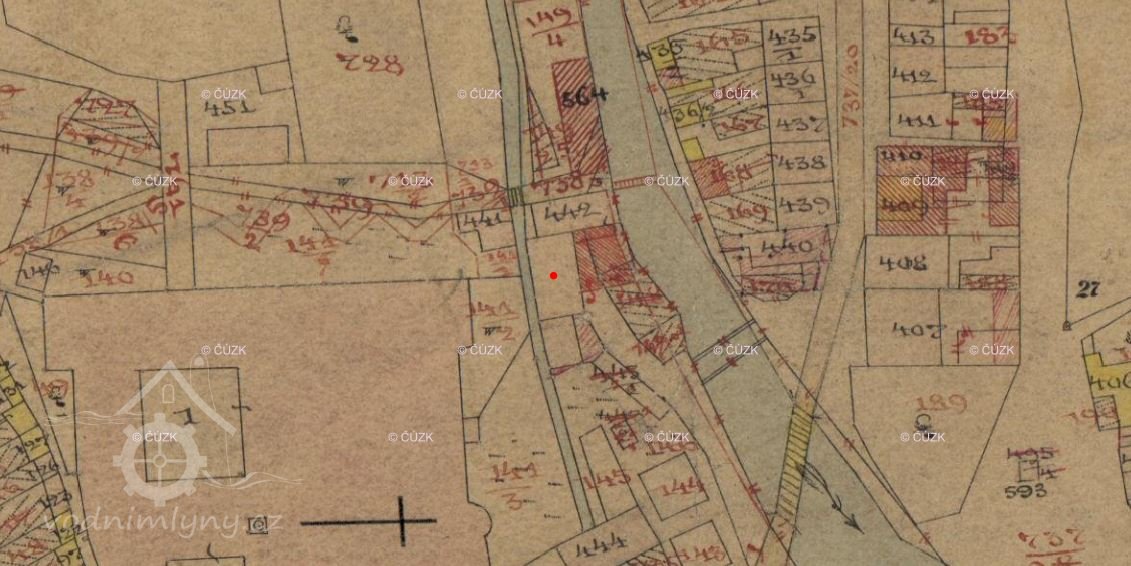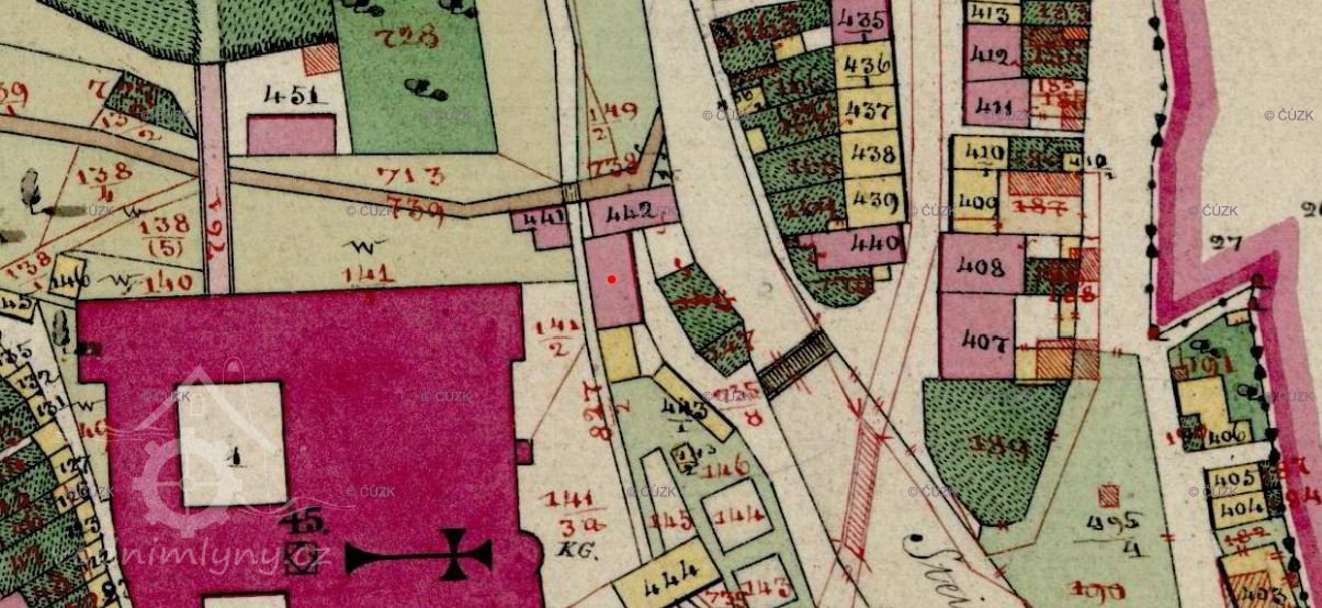1676 Hesseliův urbář: mlýn o 3 složeních, z mlýna se platí ročně 115 kop poplatku a 18 kop výkrmného