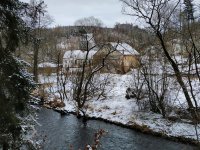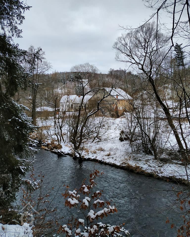 Mlýn pod hrází nádrže Slezská Harta.