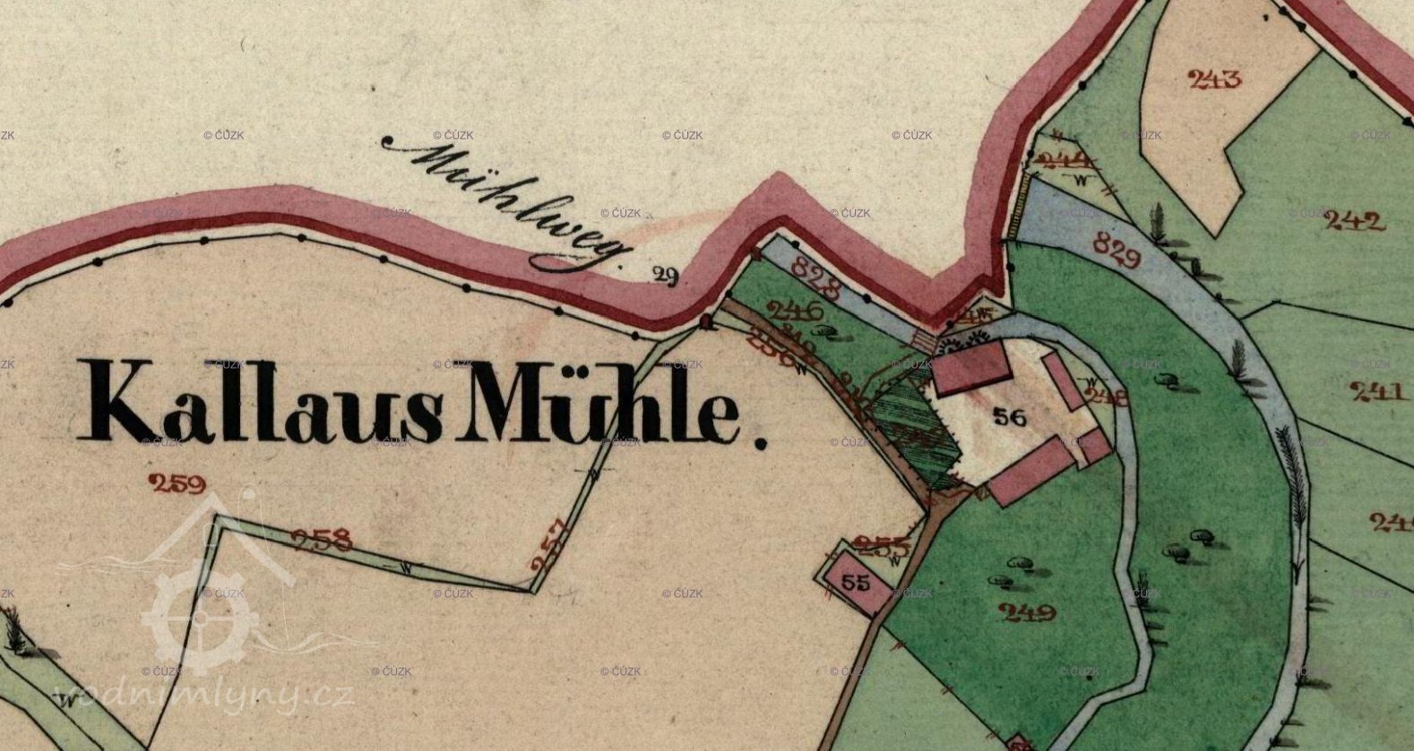 PopisV roce 1930 měl mlýn 1 kolo na vrchní vodu, hltnost 0,224 m3/s, spád 4,6 m, výkon 8,06 HP.