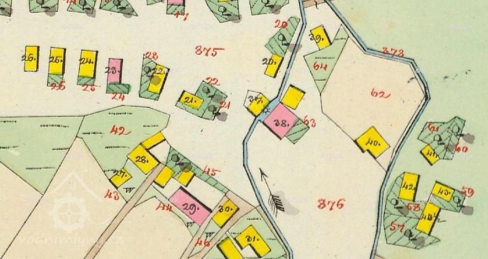 V roce 1930 zde pracuje Francisova turbína a kolo na svrchní vodu s celkovým průtokem 0.385 m3/s, spádem 3.7 m a výkonem 15.7 k.