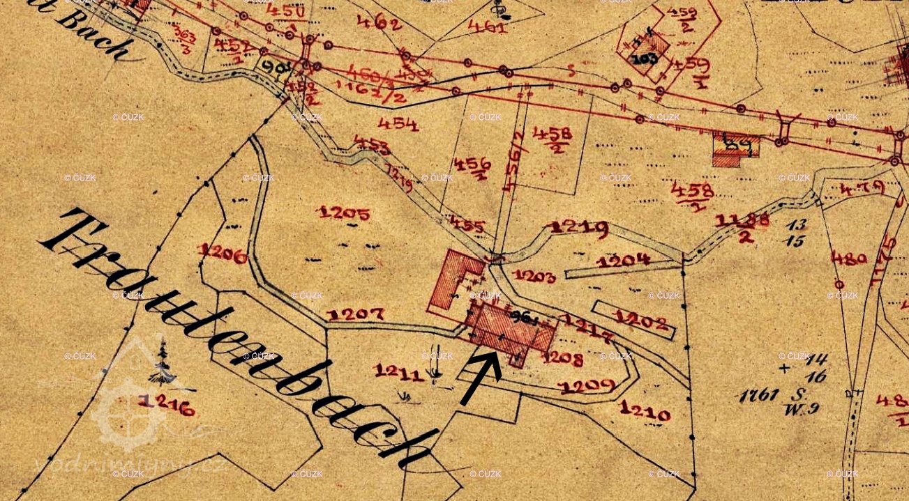Mlýn není na stabilním katastru zakreslen, vznikl později.
