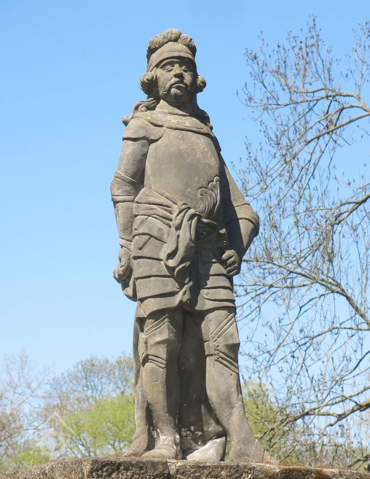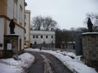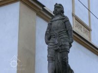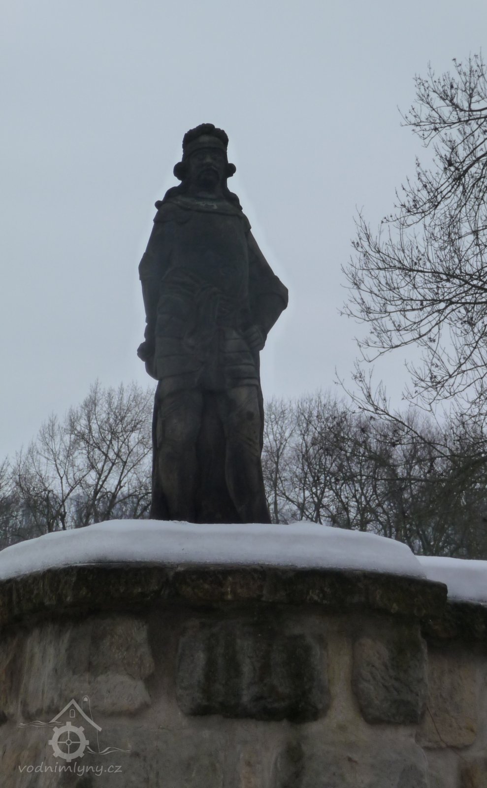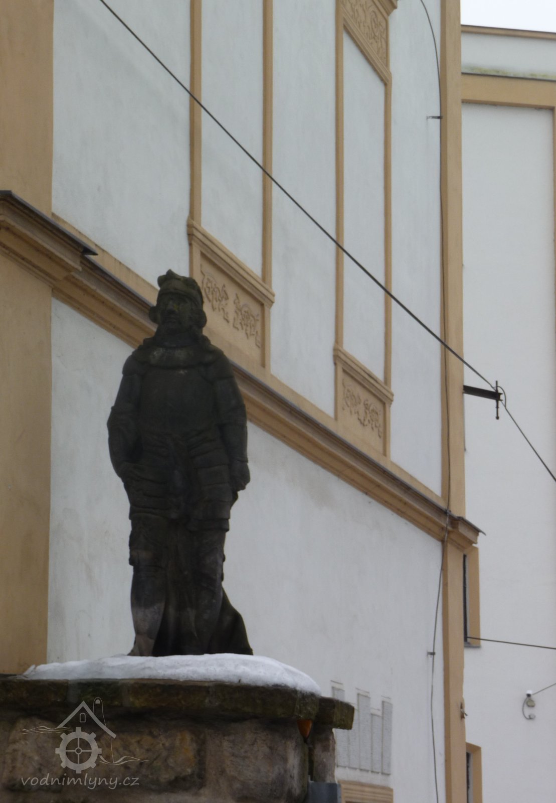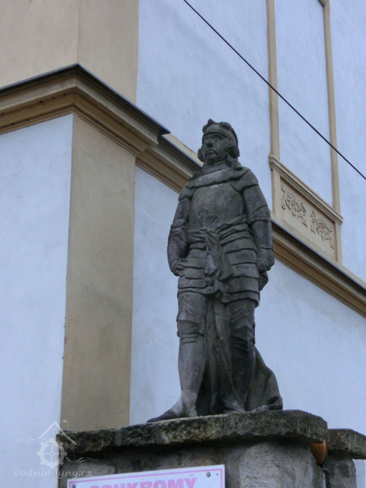 Vstupní bránu hlídají sochy dvou rytířů, které mlynář dostal 1830 od rytíře z Neuberku.