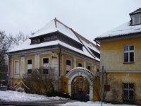Vstupní bránu hlídají sochy dvou rytířů, které mlynář dostal 1830 od rytíře z Neuberku. Ke mlýnu náležel i naproti ležící hostinec "Na Sklípku", zbořený 1933.
