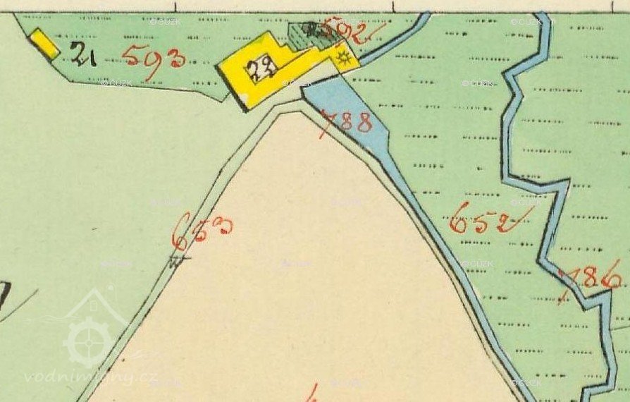 Popis1930: 1 kolo na svrchní vodu, hltnost 0,14 m3/s. spád 5,5 m, výkon 5,2 HP