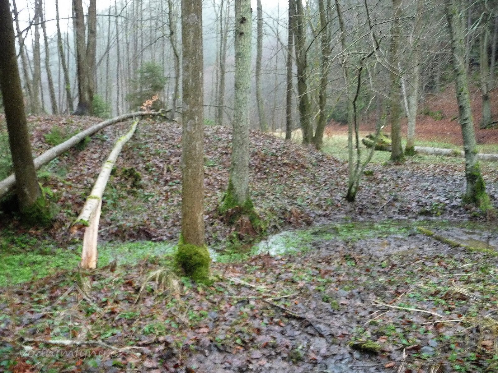 Asi pět set metrů pod Pod semínským mlýnem po proudu říčky Žehrovky narazíme na přírodní a archeologickou záhadu. Na břehu Žehrovky je ve skále obrovská díra, která skrývá v podzemí zčásti vytesaný prostor. Je tam vytesaný žlab pro odtok vody a kapsy ve stěně. V podzemí je nezamrzající silný pramen o vydatnosti 4 litry za vteřinu a teplotě 8 stupňů. Před jeskyní je nasypaná plošina, která převyšuje zvlhčené údolí Žehrovky asi o 2 metry. Tato plošina nebyla při povodních zaplavována a sloužila jako základna pro dřevěnou stavbu, možná, že pro mlýn. Jeskyně mohla sloužit jako sklep.