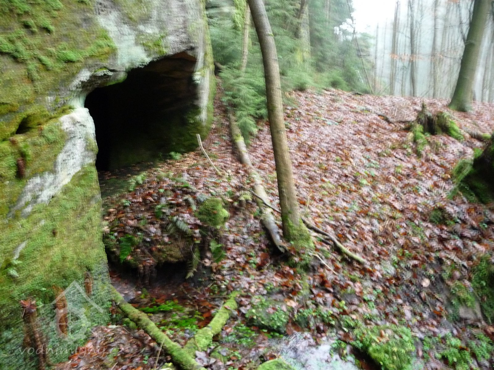 V těsné blízkosti bývalého mlýna je malá, ale prostorná jeskyně, zahnutá vpravo ve směru vchodu do ní. Částečně je upravená. vlevo od vchodu je malý pramen, vytékající upravenou stružkou ve skále.