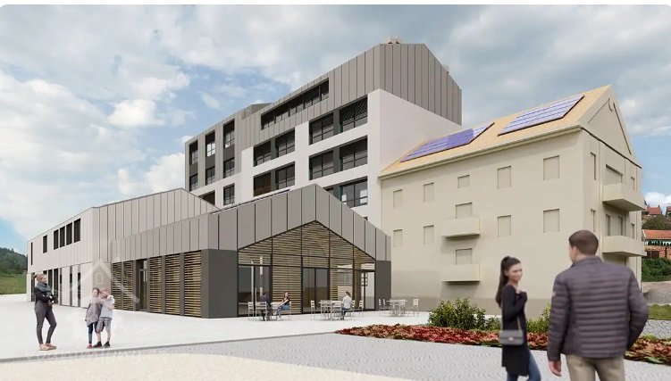 - dokončení stavebních prací - 6 nadzemních podlaží - se školou v hlavní budově a s propojením budovy Mlýnice přes náhon s 2 podlažní budovou s minipivovarem, restaurací a školní jídelnou.