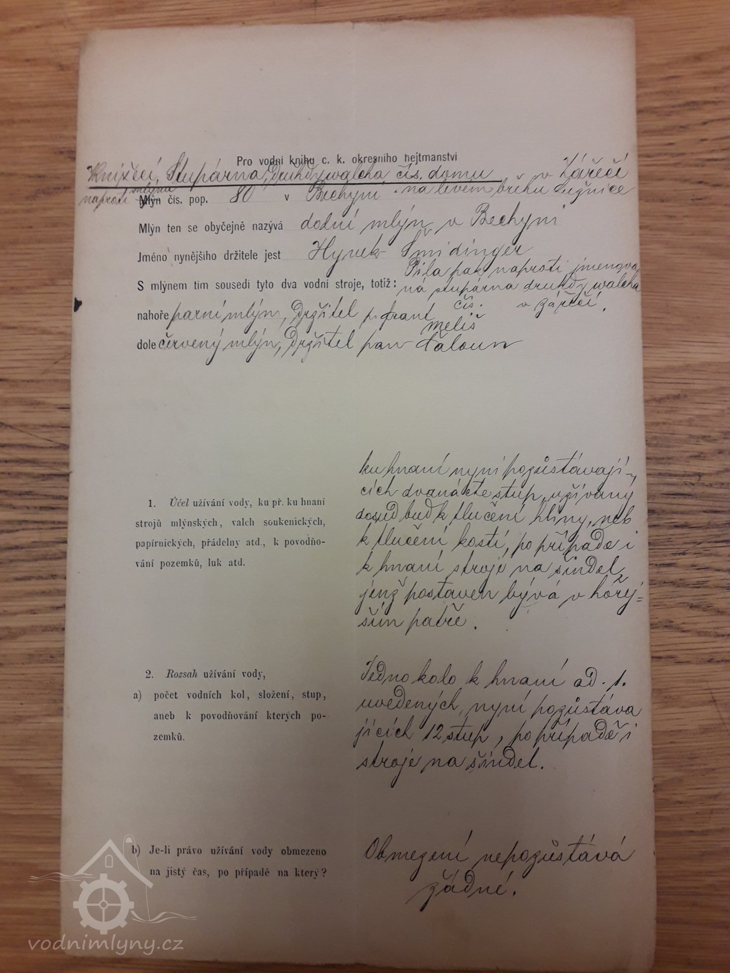 Příjmení mlynářů působících na mlýně: