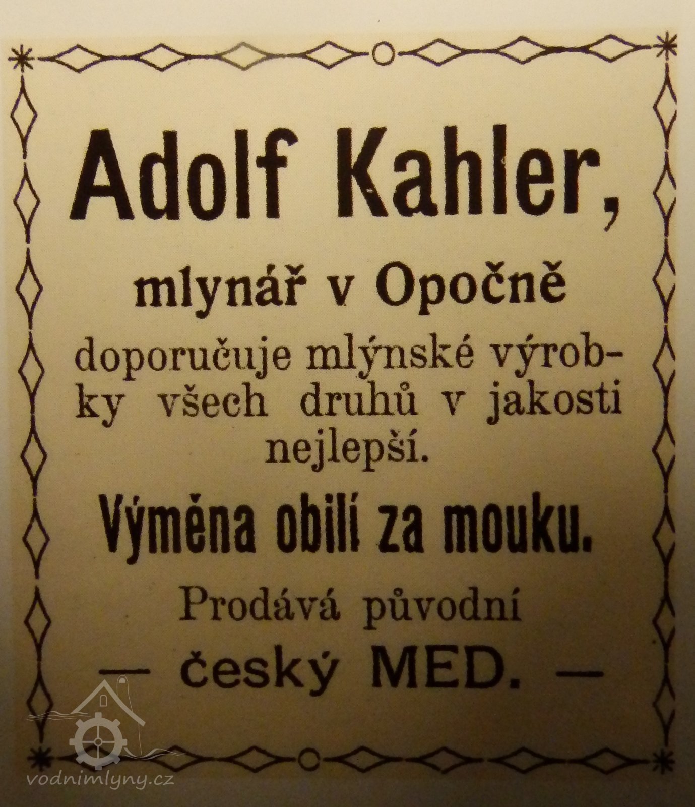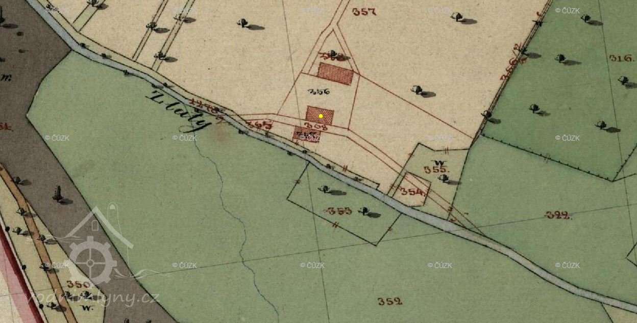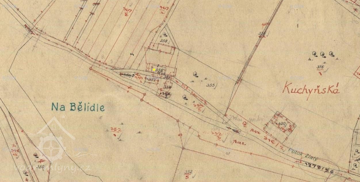 Antonín Flesar, Popis historicko-archaelogicko-statistický okresu opočenského, Hradec Králové 1895: Válcový mlýn Kahlerův na Zlatém potoku směrem k Lištovince a k Chlupatému stávku. Druhdy tu stávala valcha, louka před mlýnem na levém břehu posud sluje bělidlo, protože zde r. 1784 barvírna společníků Janelle a Hofmana bělidlo měla.