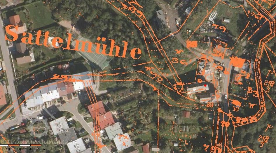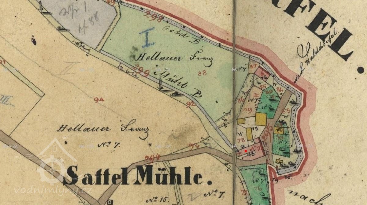 1919 - mlýn získal nový náhon, který využil vodu z výše položeného Hamerského mlýna (FK)