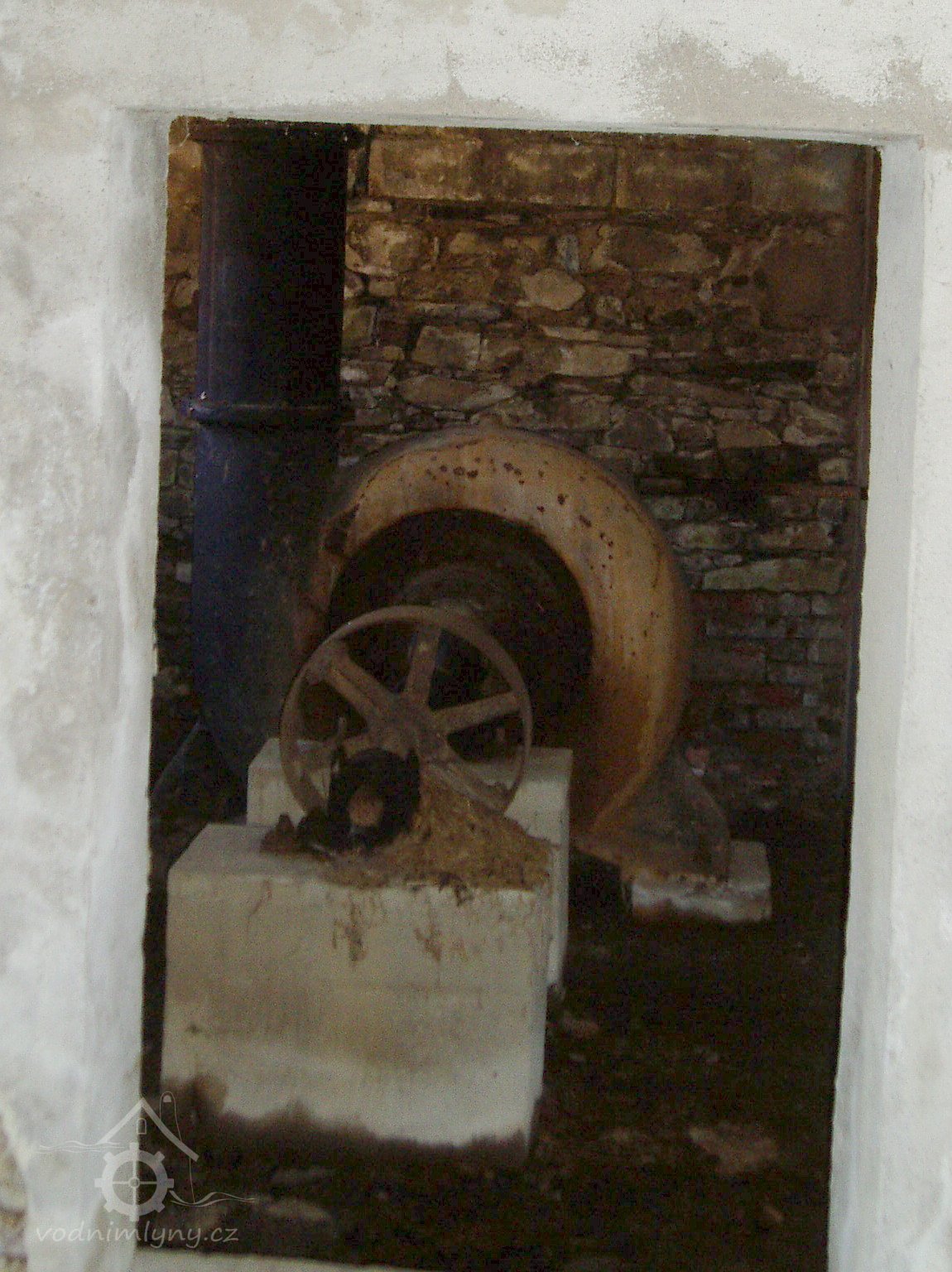 Do roku 1919, kdy mlýn převzal nynější vlastník toto vodní dílo, byla ve mlýně ještě dvě kola. Dle doplňku normačního protokolu obě kola na vrchní vodu měla průměr 4 m, šířka mezi věnci 0,80 m. Při 8 ot. /min. byla spotřeba vody pro obě kola 334 l/sec. Tato byla v roce 1934 vyměněna pro sešlost za kolo jedno na vrchní vodu. Kolo průměru 4 rn, šířka mezi věnci 1,10 m a hloubce korečku 25 cm. Počet obrátek při plném zatížení je 8. Kolo vyvine při osmi ot./min. obvodovou rychlost 1,67 m/sec. a při plnění 1,5 spotřebuje ku pohonu 0,228 m3/sec.