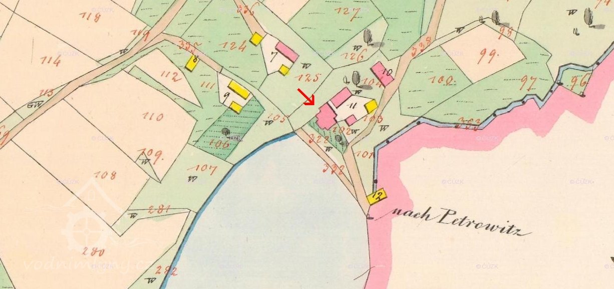 Mlýn čp. 3 v Plhově pod čelní hrází rybníka „Luňák" má dvě složení, z nichž každé hnáno jest kolem na vrchní vodu zřízeným. Voda na mlýn vede se z rybníka „Luňák" parc. čís. 321 a prochází pod hrází kdež vtéká do vantrok 1,06 m širokých, kteréž na konci ve dví rozděleny a stavítky kterými se voda na jmenovaná kola vede.
