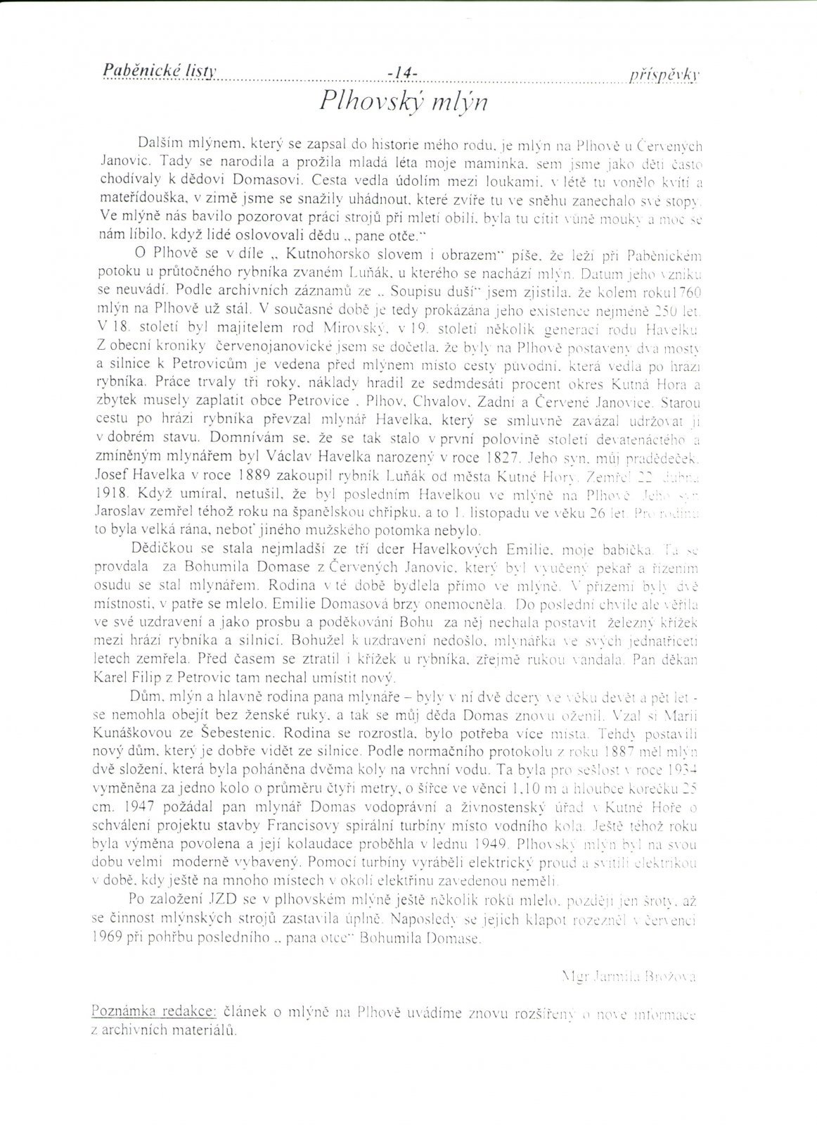 Další upřesněníkopii článku v místním časopice Paběnické listy poskytla autorka