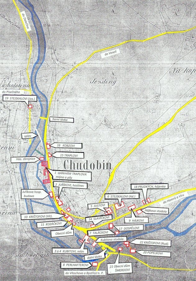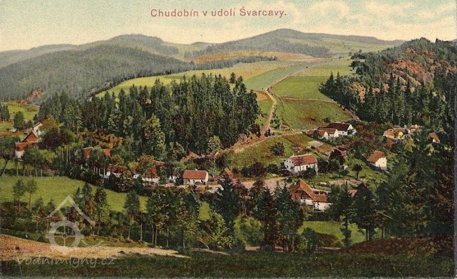 přibližně střed zaniklé obce Chudobín