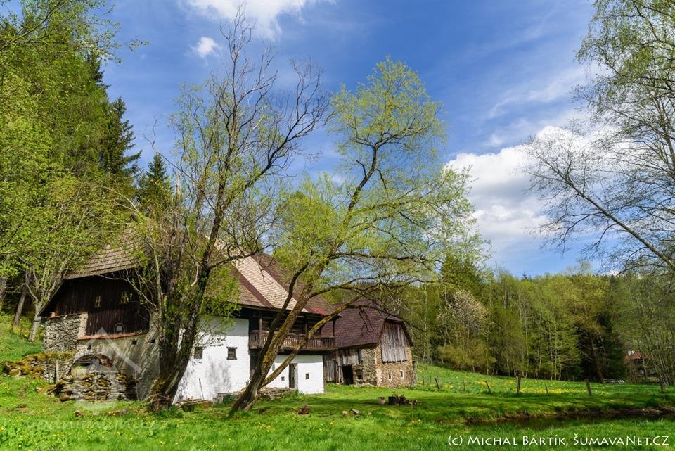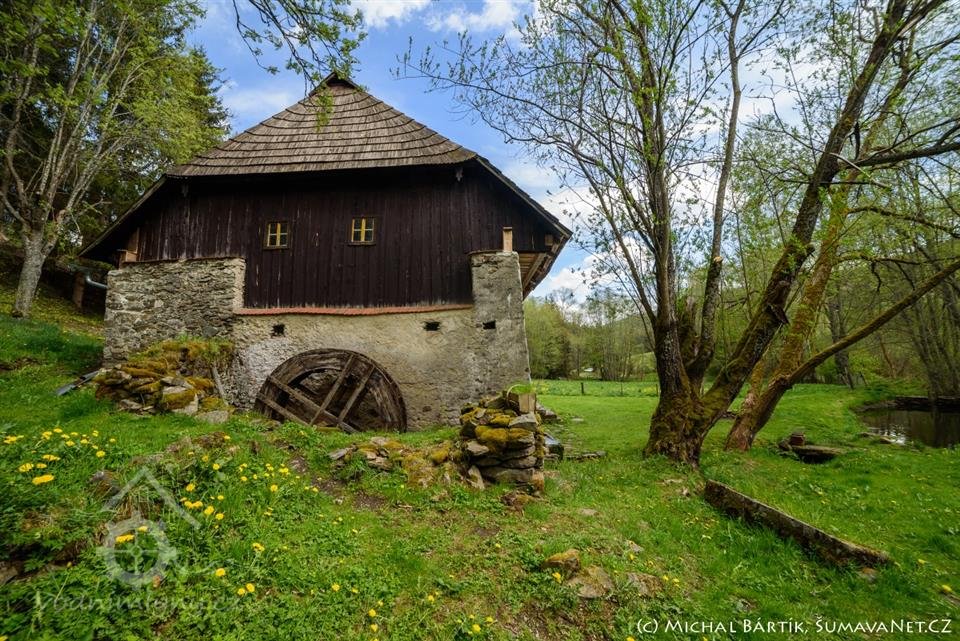 Krásně dochovaný, roubený šumavský mlýn který je prohlášen kulturní památkou.
