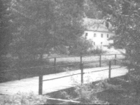 Původní dřevěný zastřešený most 1969 nahrazen otevřeným železným.