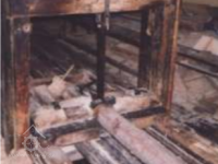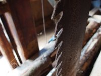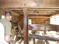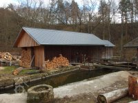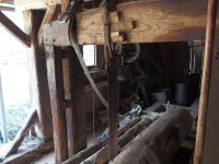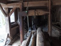 Bokem od hlavní budovy stojí jednoduchá dřevěná stavba pro pilu. Zde je celé technické zařízení ze dřeva, rovněž rám pily, která nese pouze jediný list.