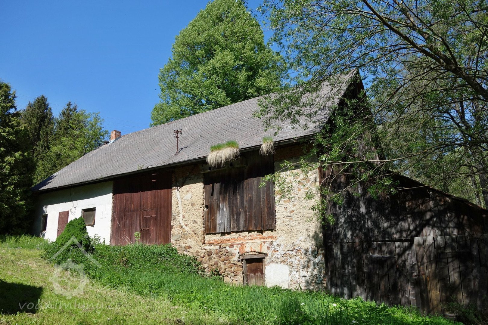 Stavení obdélného půdorysu z lomového kamene, patrové, průčelí 3-4 osá. Mlýnské složení zachováno. Na jižní straně v patře lednice zbořena, kolo pryč. zachována hřídel a kolo na spodní vodu. Střecha tašková, štít dřevěný. Hospodářské stavení východně od mlýnice samostatné, novodobé. Mlýn je situován ve svažitém terénu pod malým rybníčkem, do jehož hráze je zabudována šachta s propustí v patě hráze pohánějící kolo na spodní vodu. Vzhledem ke svažitému terénu je východní vstupní a zejména jižní štítové průčelí orientováno do údolí s vodotečí vytékající z rybníčka opatřeno vysokou soklovou podezdívkou. Budova obdélného půdorysu převážně z lomového zdiva krytá sedlovou střechou se západním bočním průčelím prolomeným zleva 2 pravoúhlými okenními otvory se čtyřtabulkovými výplněmi v líci zdiva a pravoúhlým vstupem vloženým do segmentového záklenku, po jehož stranách se nachází 2 malá obdélná okénka. Severní štítové průčelí je hladké s bedněným štítem. Východní vstupní průčelí akcentuje dřevěná veranda vstupu umístěná na trámové konstrukci přístupná z boku vedeným schodištěm. Veranda je kryta sedlovou stříškou vikýřovitě vybíhající ze sedlové střechy mlýna. Veranda dělí průčelí na dvě přibližně stejně dlouhé části prolomené 2+2 pravoúhlými okenními otvory s dvoutabulkovými a šestitabulkovými okenními výplněmi v líci zdiva. Suterén ve výrazně převýšené jižní části východního průčelí je prolomen pravoúhlým vstupem a drobným obdélným okénkem. Jižní štítové průčelí tyčící se nad údolíčkem s potokem je mimořádně vysoké, v pravém úhlu k němu přiléhá kamenná terasní zídka na úpatí hráze, z níž ústí trubkou propusť z rybníčka. Průčelí je prolomeno otvorem po již chybějícím mlýnském kole a výše 3 asymetricky umístěnými pravoúhlými okenními otvory se šestitabulkovými výplněmi v líci zdiva (vytlučený západní otvor je krytý deskou). Štít je rovněž bedněný. Paralelně více na východ umístěná příčně průjezdná stodola obdélného půdorysu krytá sedlovou střechou je částečně zděná, zčásti s bedněnými výplněmi stěn. Stodola je vzhledem ke klesajícímu terénu na jihu rovněž opatřena vysokou podezdívkou se suterénním patrem přístupným ze západu pravoúhlým vstupem s kamenným ostěním. K jižnímu štítovému průčelí stodoly přiléhá přízemní dřevěný přístavek krytý pultovou střechou. Severní zděná část západního průčelí je prolomena dvěma pravoúhlými okenními otvory a pravoúhlým vstupem. Východní průčelí je pilířové konstrukce s bedněnými výplněmi stěn.