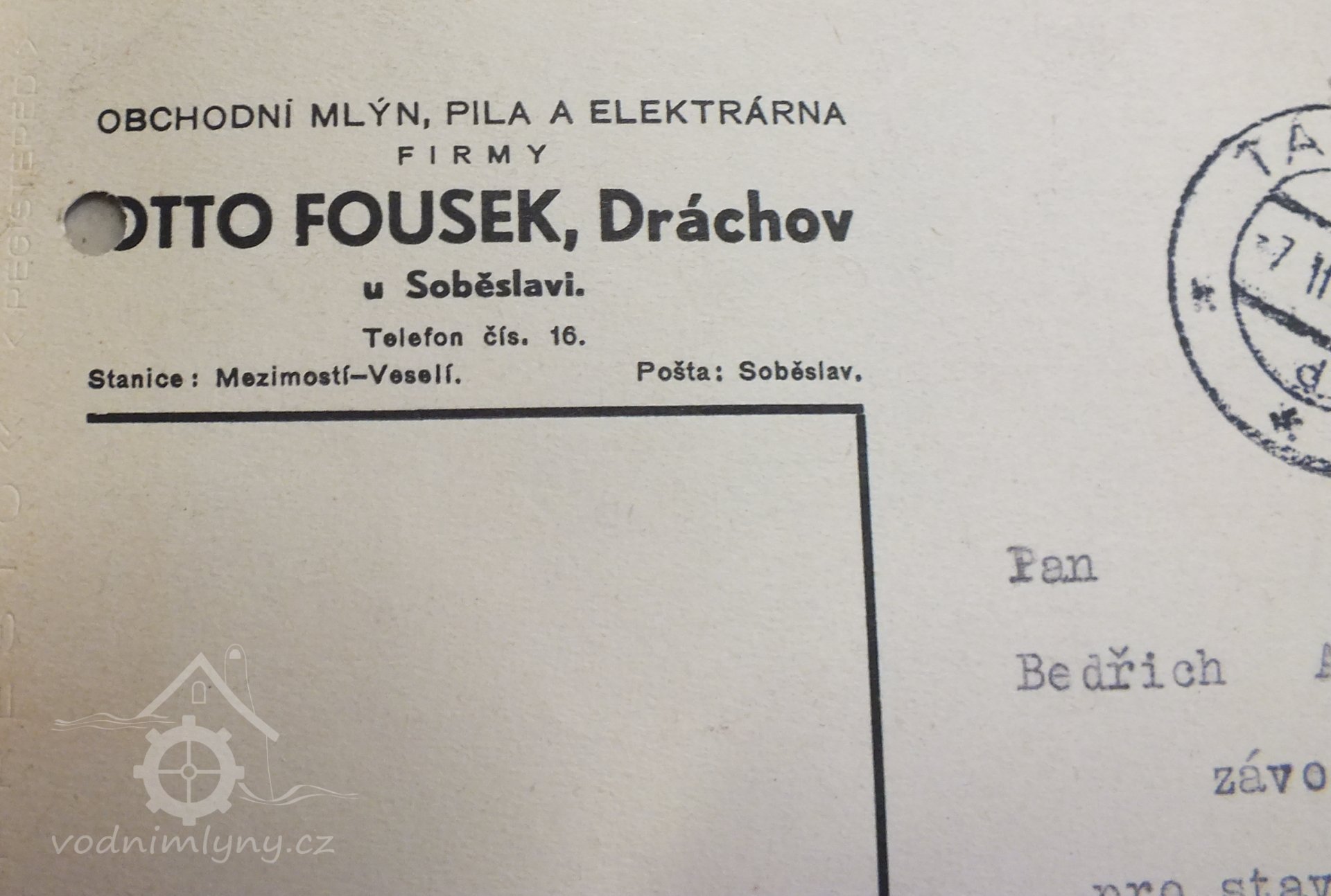V Dráchově fungoval mlýn, elektrárna a pila firmy Kolář a spol.