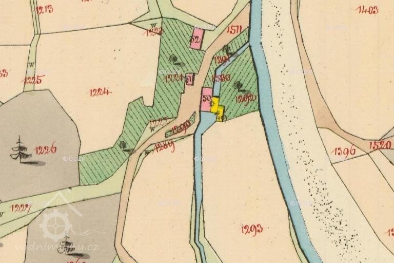 9.9.1929: ve zděné kryté lednici vodní kolo na svrchní vodu, výkon 3-5 HP, již velmi sešlé
