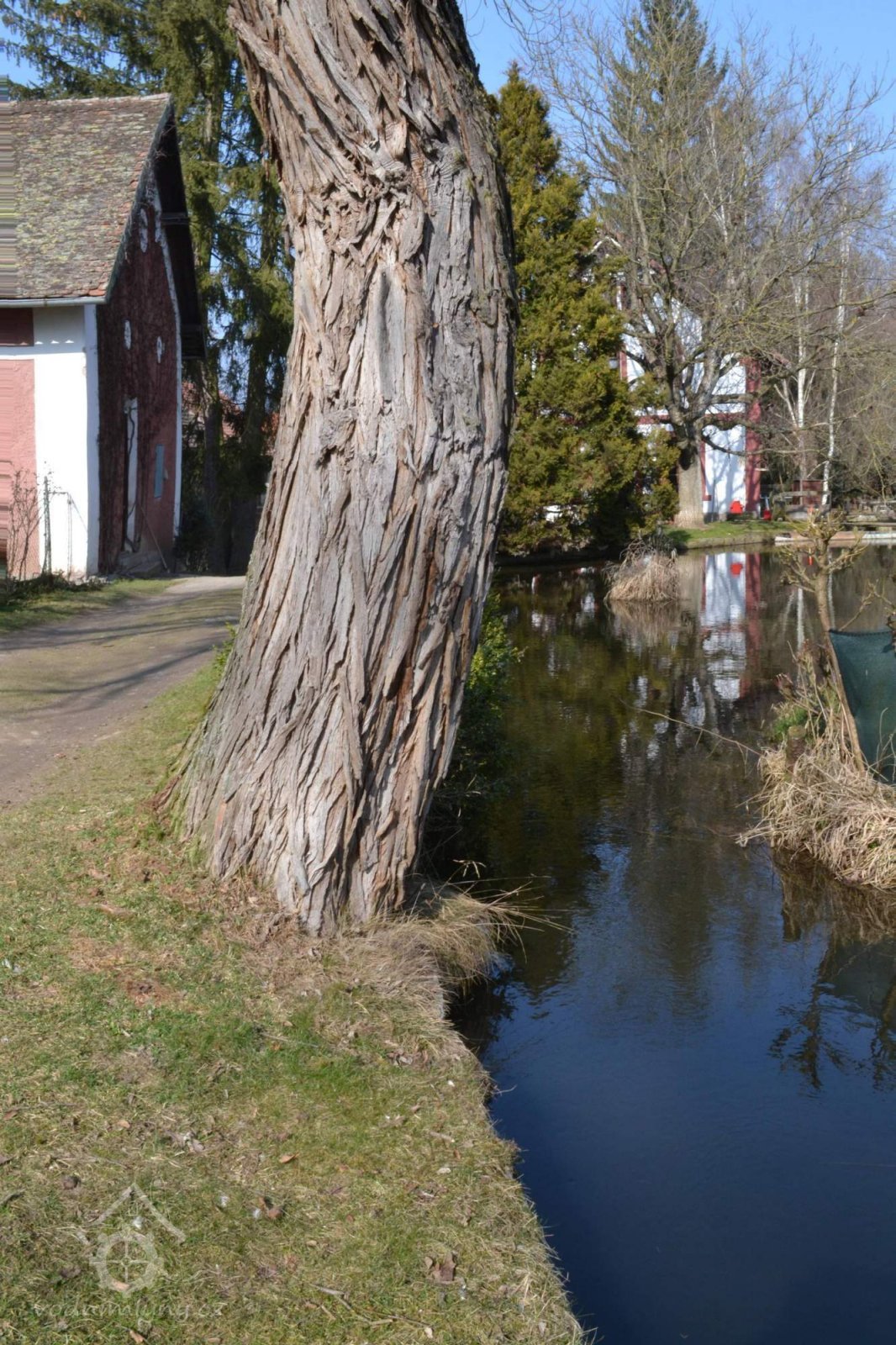 Brziny opouští svůj rovnější směr a potok vtéká do mírného oblouku,  vystavět mlýn.