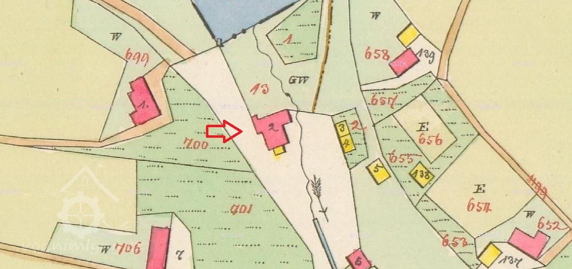 Popis1930: 1 kolo na svrchní vodu, hltnost 0,077 m3/s, spád 6 m, výkon 4 HP