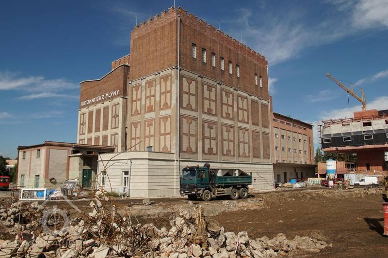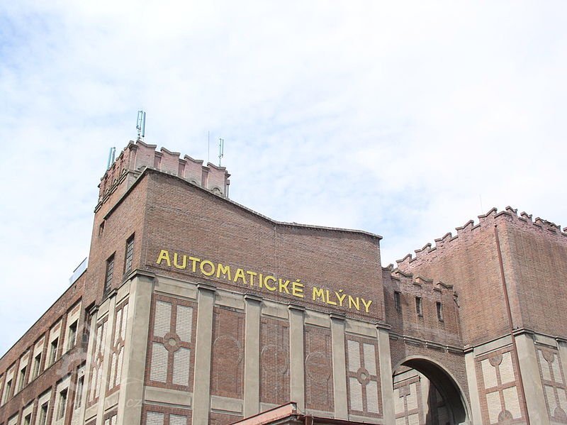 Budova automatického mlýna bratří Winternitzů z let 1910-11, podle návrhu Josefa Gočára ve stylu dekorativní moderny, s kontextuální přístavbou skladu mouky z 50. let 20. století.