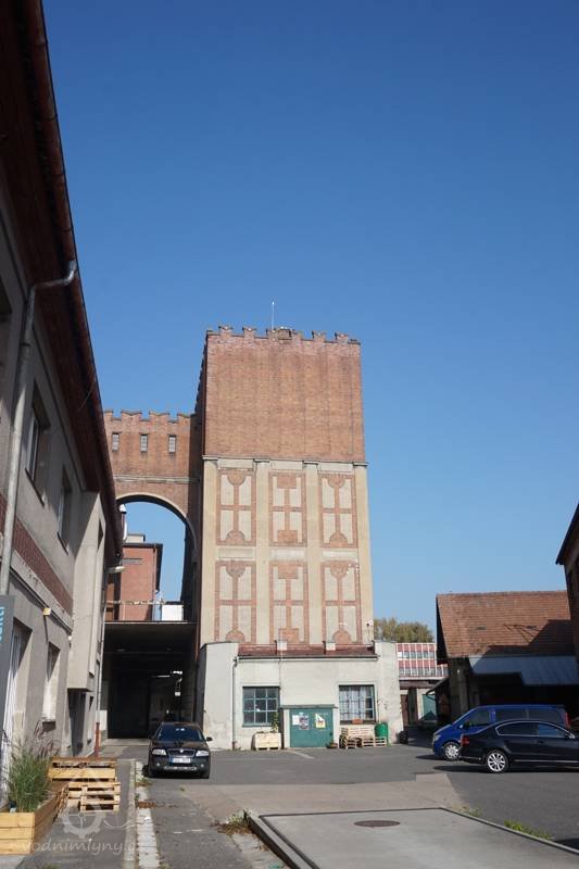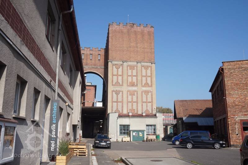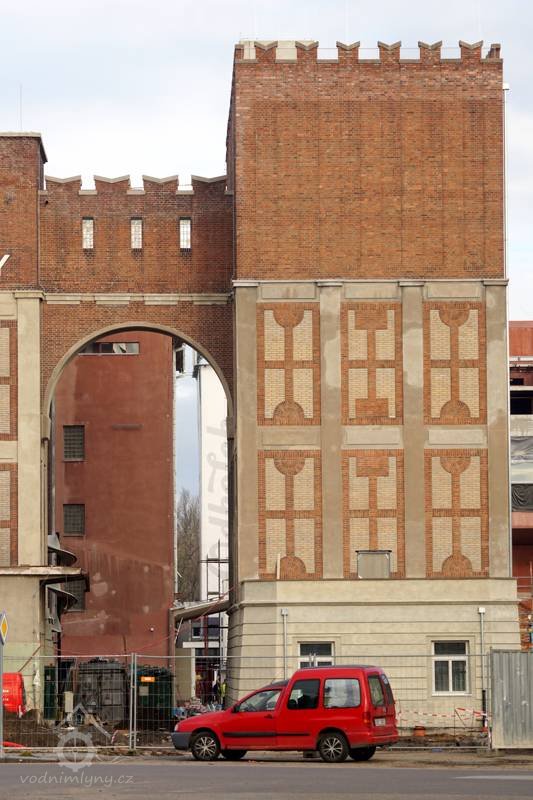 Budova moučného sila automatického mlýna bratří Winternitzů z let 1910-11, podle návrhu Josefa Gočára ve stylu dekorativní moderny, včetně propojení nadzemní krytou lávkou.