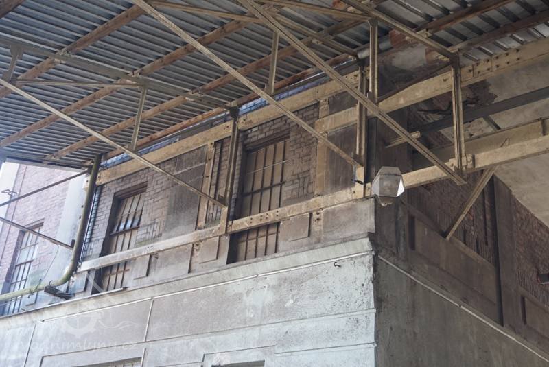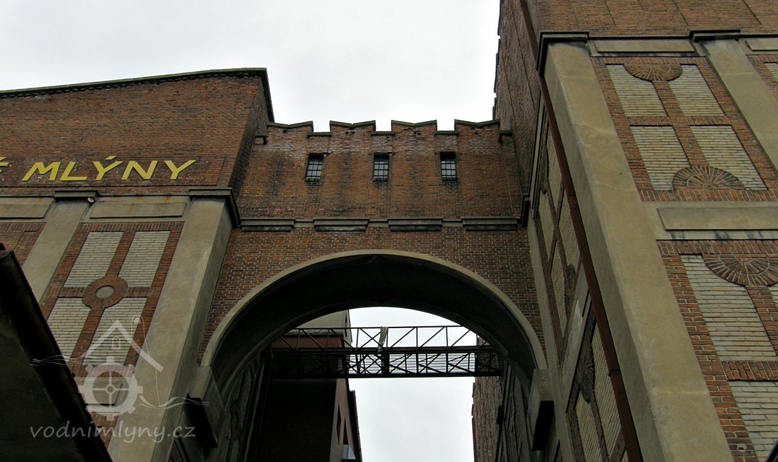 Spojovací mostek z r. 1922 v podobě prampouchu, spojujícího starou budovu mlýna a nové samostatné silo, kontextuálně doplněný J. Gočárem.