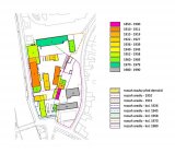 Soubor budov vznikal v několika etapách: v letech 1909 - 1911, následně po požáru 1919 a dále v letech 1922, 1926 přestavěno, přístavba křídla u řeky po roce 1960.