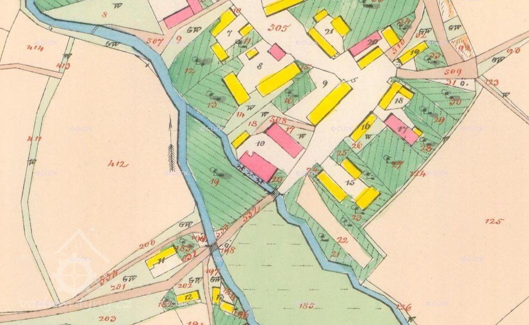 1651 Soupis poddaných podle víry: mlynář zahradník Jan Rejmund (30 let), manželka Alžběta (25), syn Pavel (8),všichni katolíci