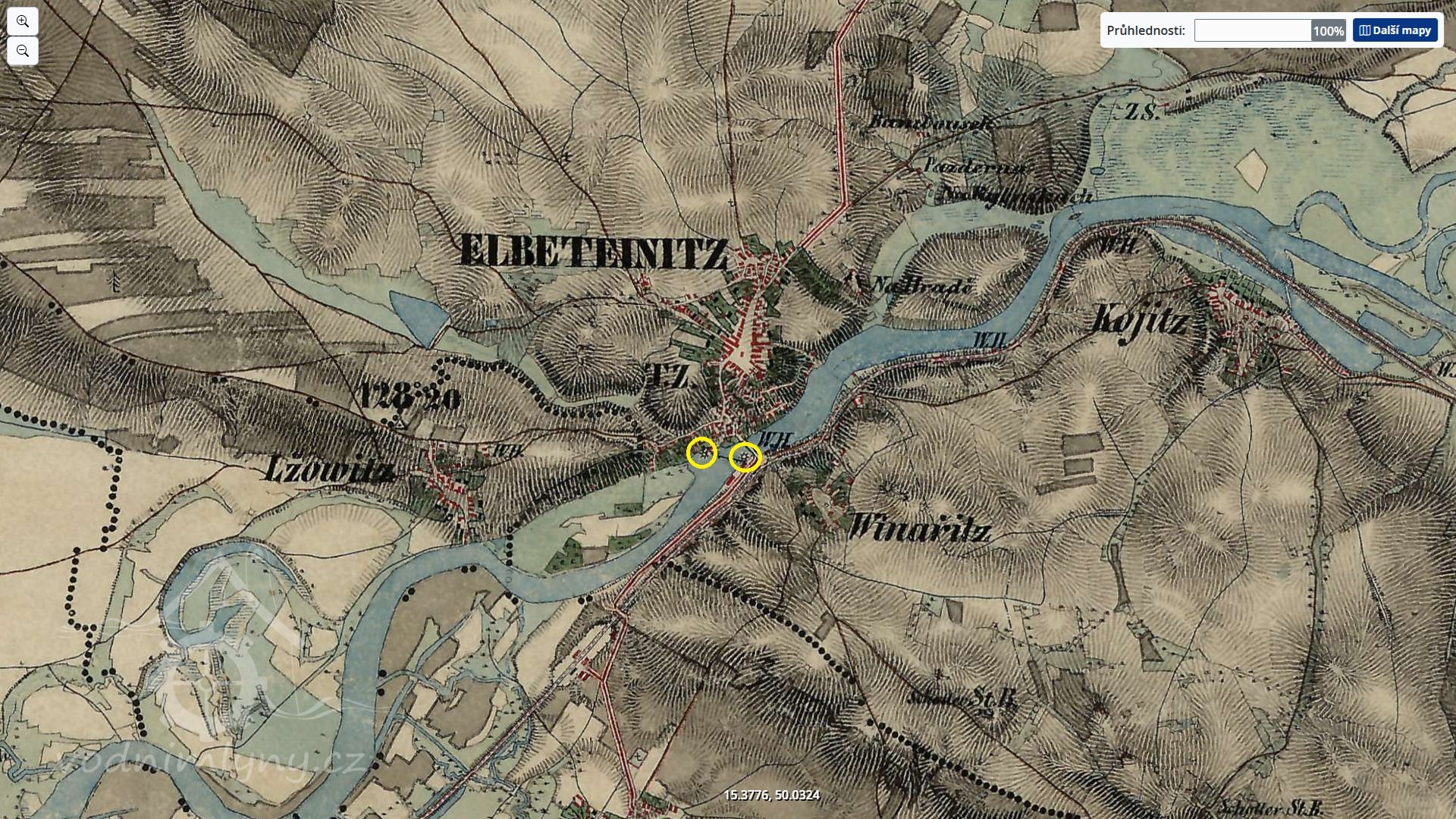 Actum při ouřadě JMC purkmistrov. města Tejnice nad Labem. Stalo se za purkmistra pana Rudolfa Specingera, toho času primasa substituirovaného, p. R. Turovskýho, p. Jiřího Hejtmánka, osob spoluradních, p. Jakuba Vávry a Václava Pospíšila, starších obecních, p. Leopolda Vrabce, důchodního městskýho, Františka Šusterky a Jana Koudelky, mlynáře obecního.