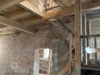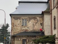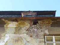 V mezidobí jsem zjistil, že kromě inkriminované části domu z ulice, kde už řadu let zatéká do obvodového zdivá a hnijí krovy, také nyní zatéká na dvou místech ze dvora. Ulomily se některé eternitové šablony a zatéká do trámů, které jsou už napadrť shnilé, na jednom nosném, pohledovém trámu se usadila houba.