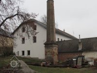 Mlýn je součástí areálu uzavřené usedlosti, kterou dále tvoří hospodářské objekty, strojovna a nevysoký, avšak masivní "průmyslový" komín. Zajímavé je jeho vyzdění v kombinaci stěn spodní části z omové opuky a jejich nároží z pálených cihel. Hlavní polgyonální těleso komína je zděné opět z pálených cihel. (RUr)