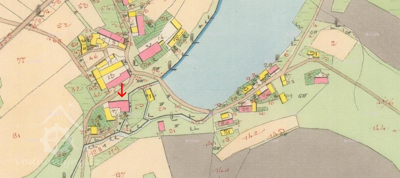 Popis1930: 2 turbíny Francis, 2 x (hltnost 0,18 m3/s. spád 6,5 m, výkon 11,7 HP), celk. výkon tedy 23,4 HP