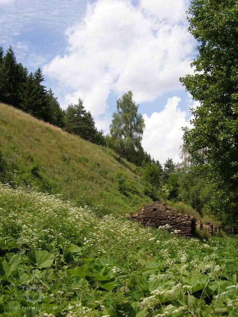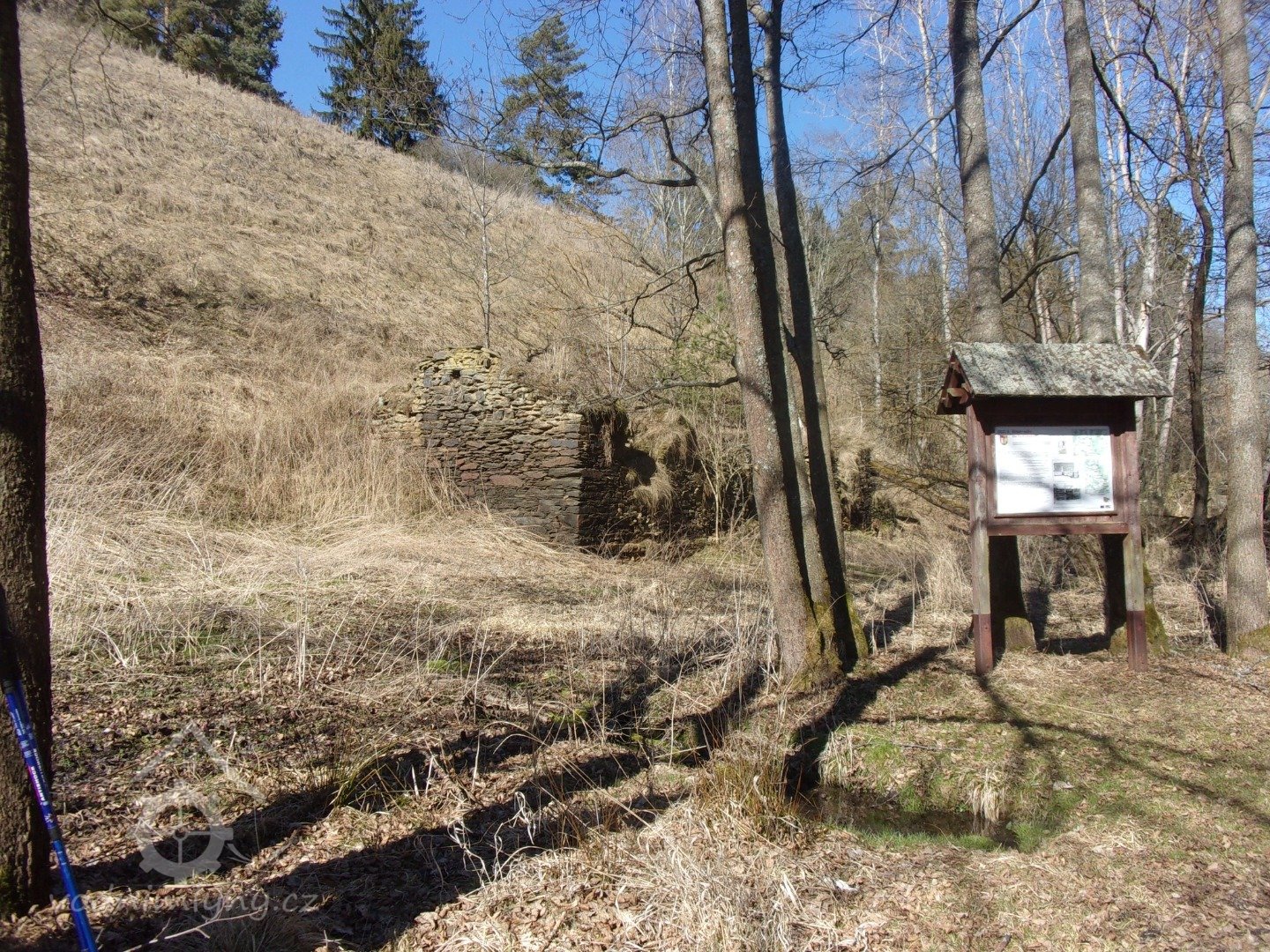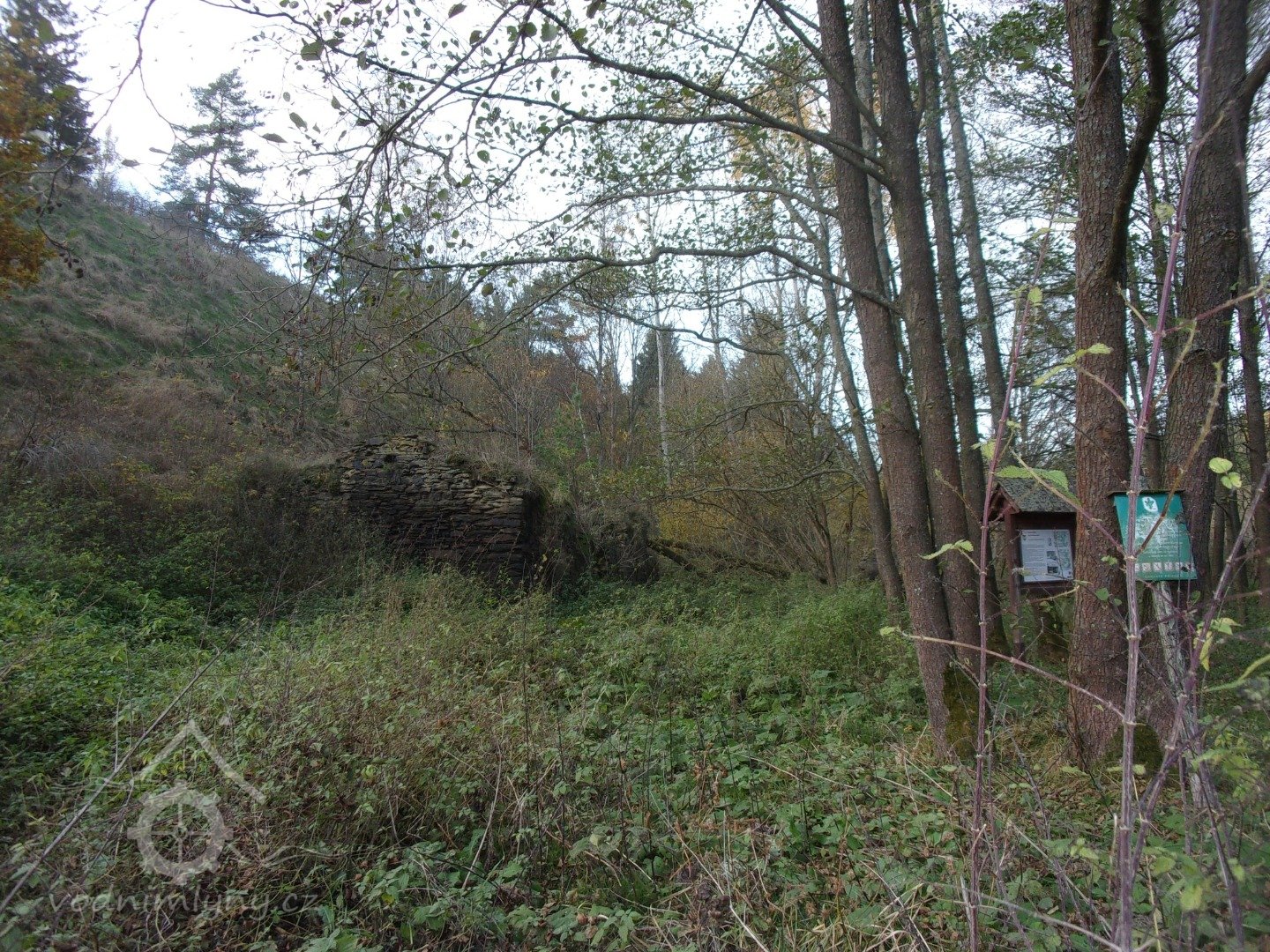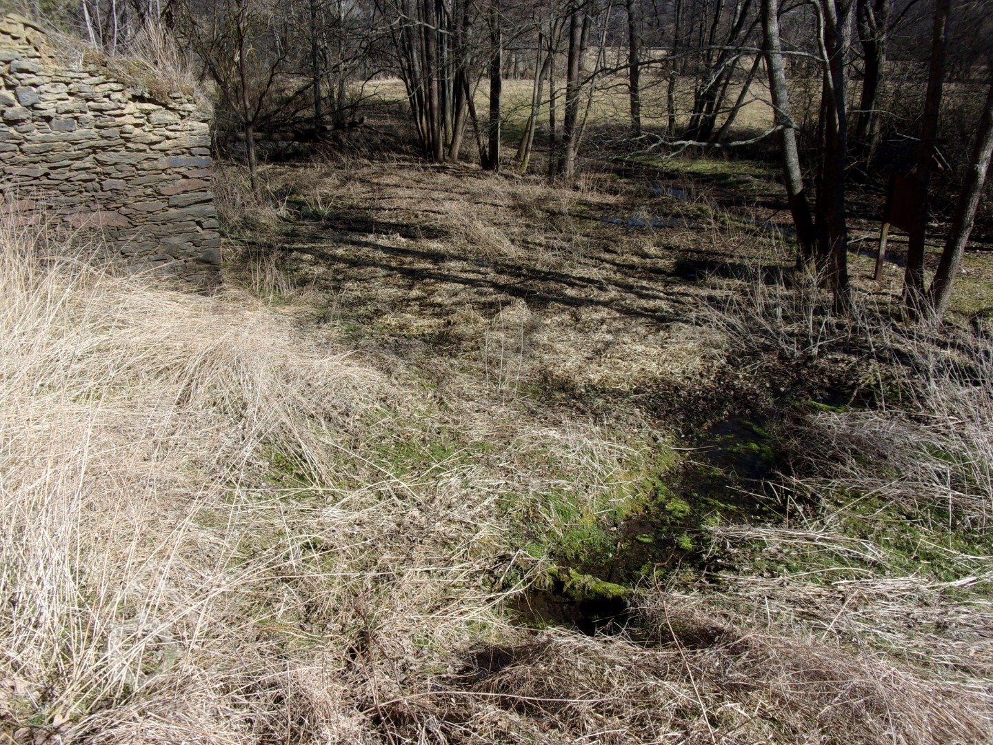 Za mlýnem zbytky sklepa a základy další drobné stavby.