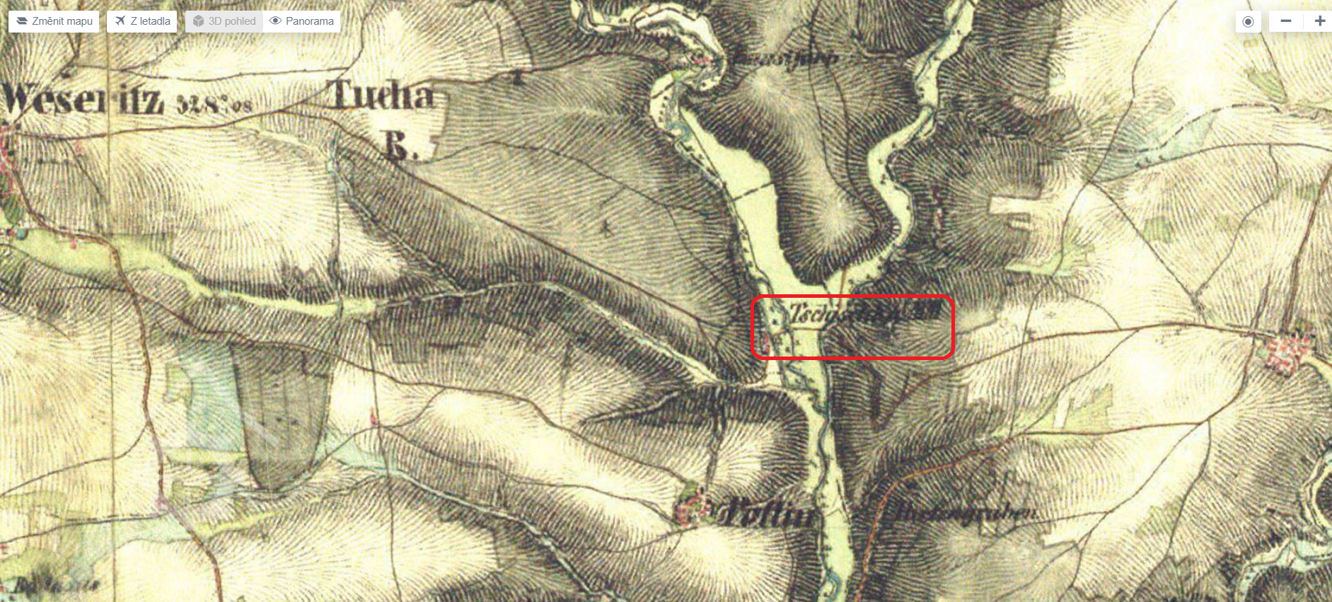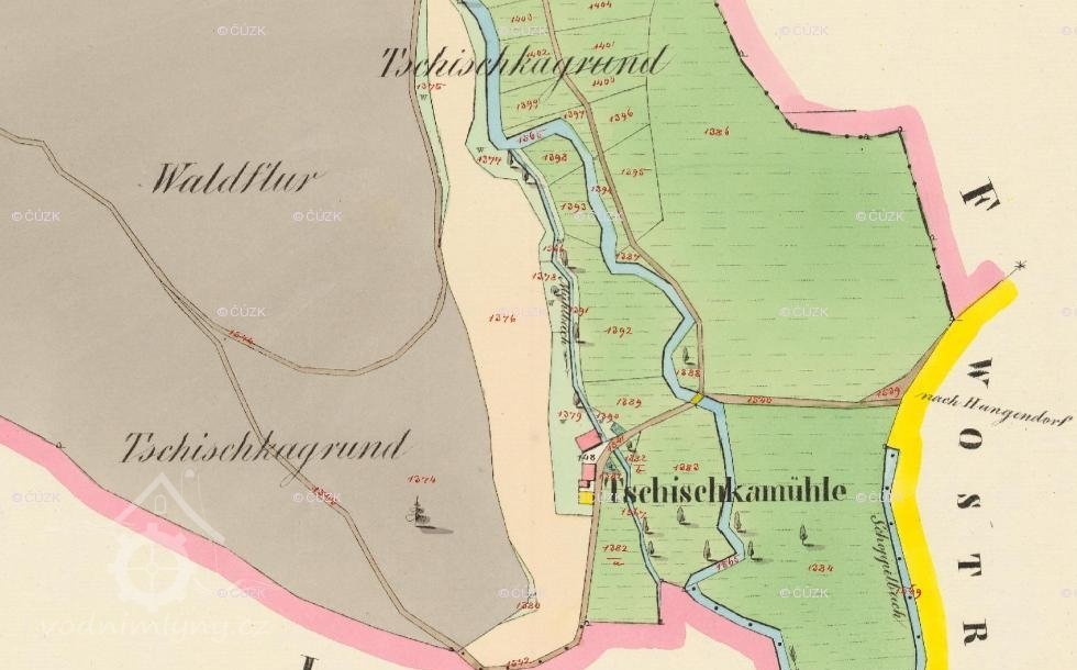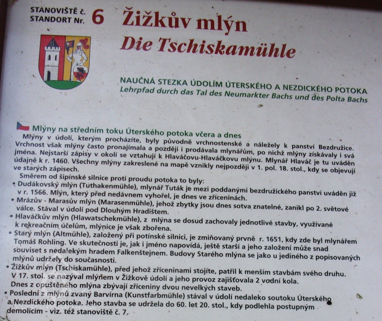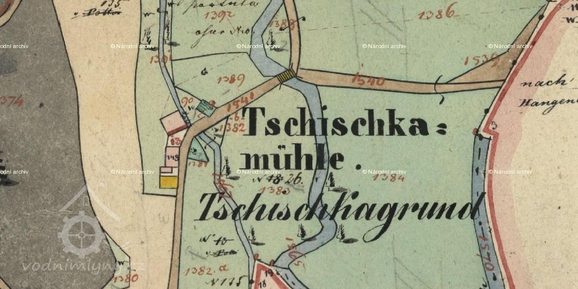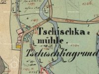 Název "Tschischkamühle" a "Kleine Tschischkamühle", později "Tschischkagrund" (a ještě později "Tschischkaforsthaus", hájovna, v těsné blízkosti mlýna) vznikly pravděpodobně díky tamnímu ležení Jana Žižky v r. 1421.
