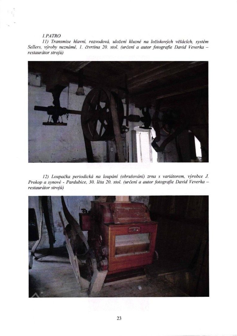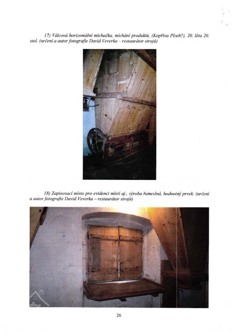 PopisV roce 1930 bylo ve mlýně vodní kolo na svrchní vodu o hltnosti 219 l/s, na spádu 5,3 m a výkonu 10,3 HP.