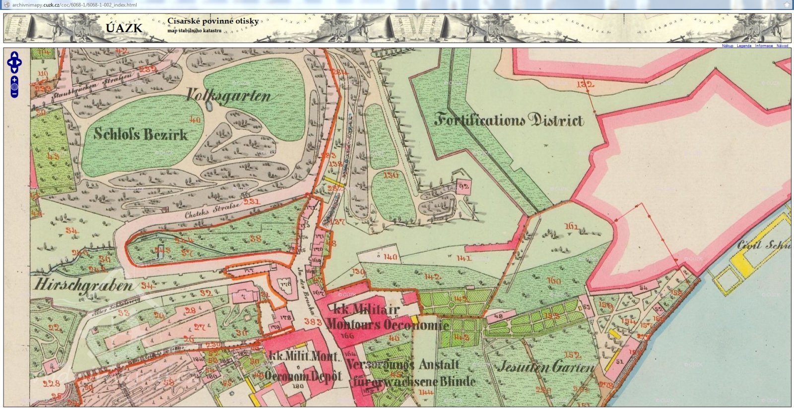 V Hlavsa-Vančura: Malá Strana je plánek z roku 1678 a u něj se uvádí, že zhruba v místě bloku severně od Klárova ústavu byl dům Walderodovský, při němž býval mlýn.