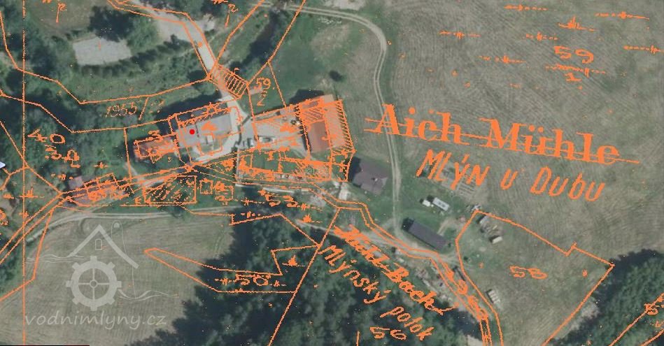 PopisV roce 1930 měl mlýn dvě kola na svrchní vodu s průtokem 0.065 m3/s, spádem 5.3 m a výkonem 3 k.