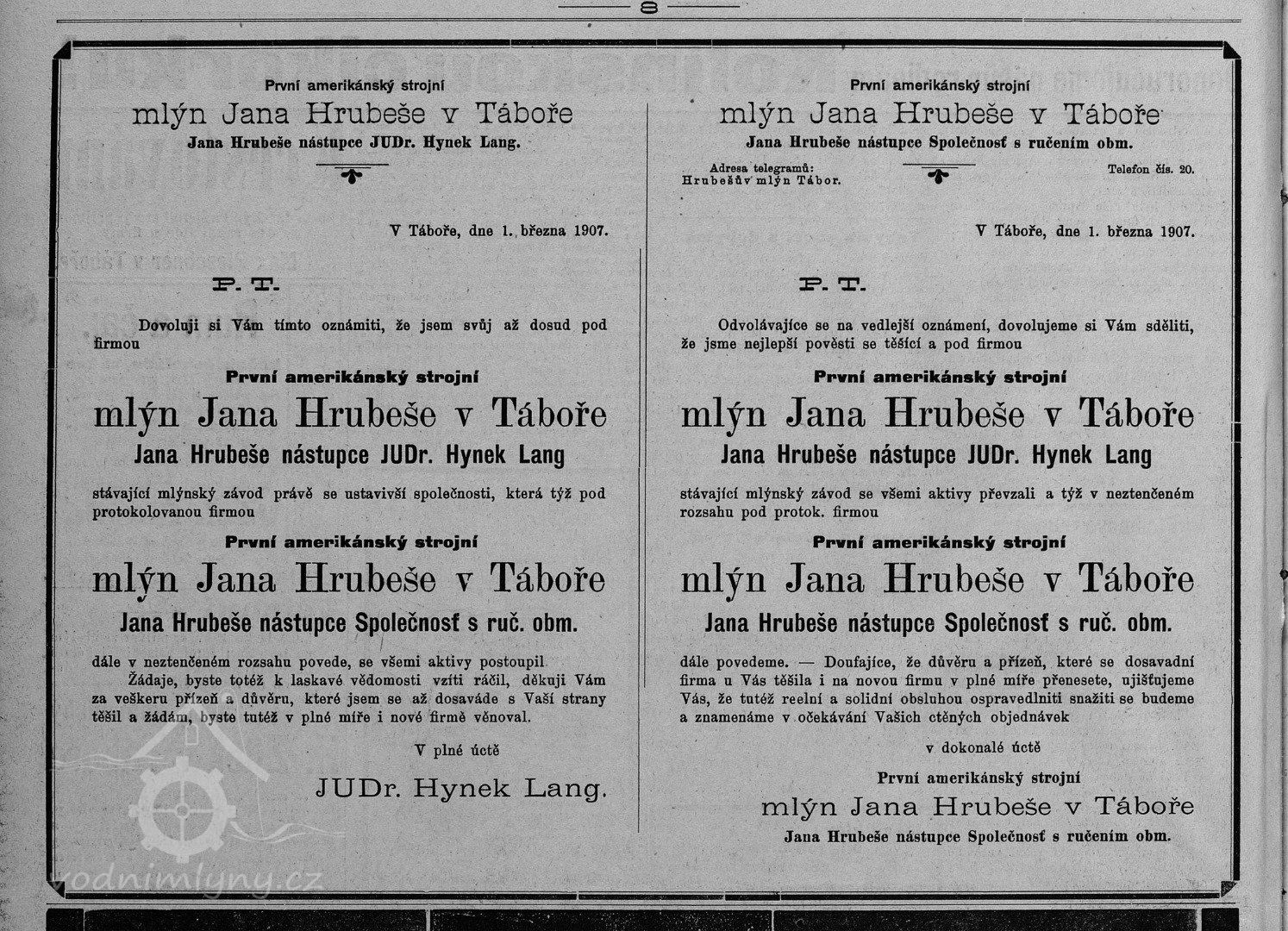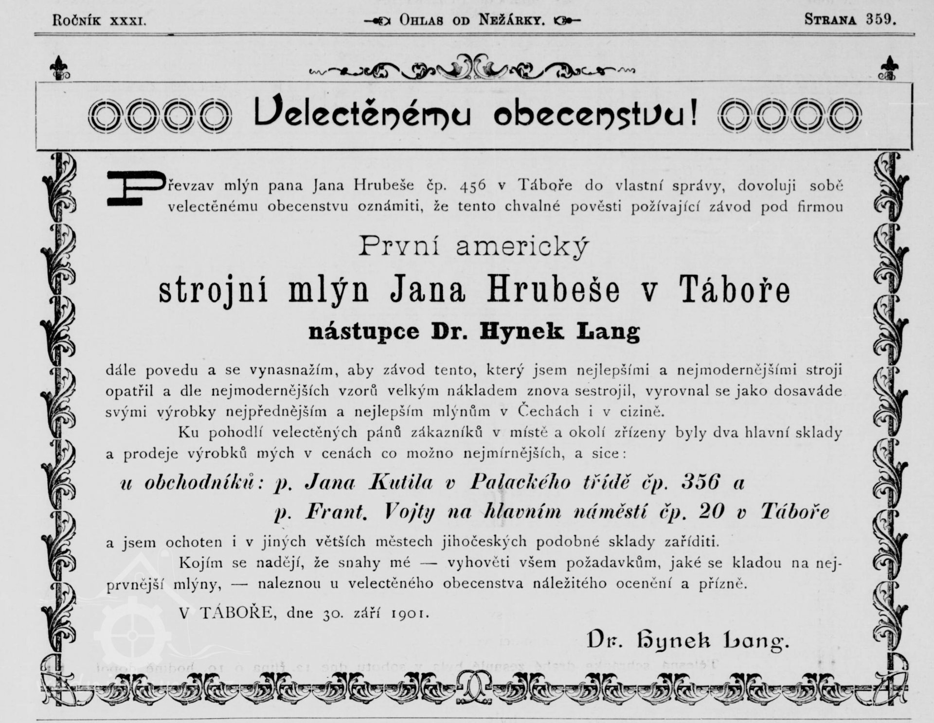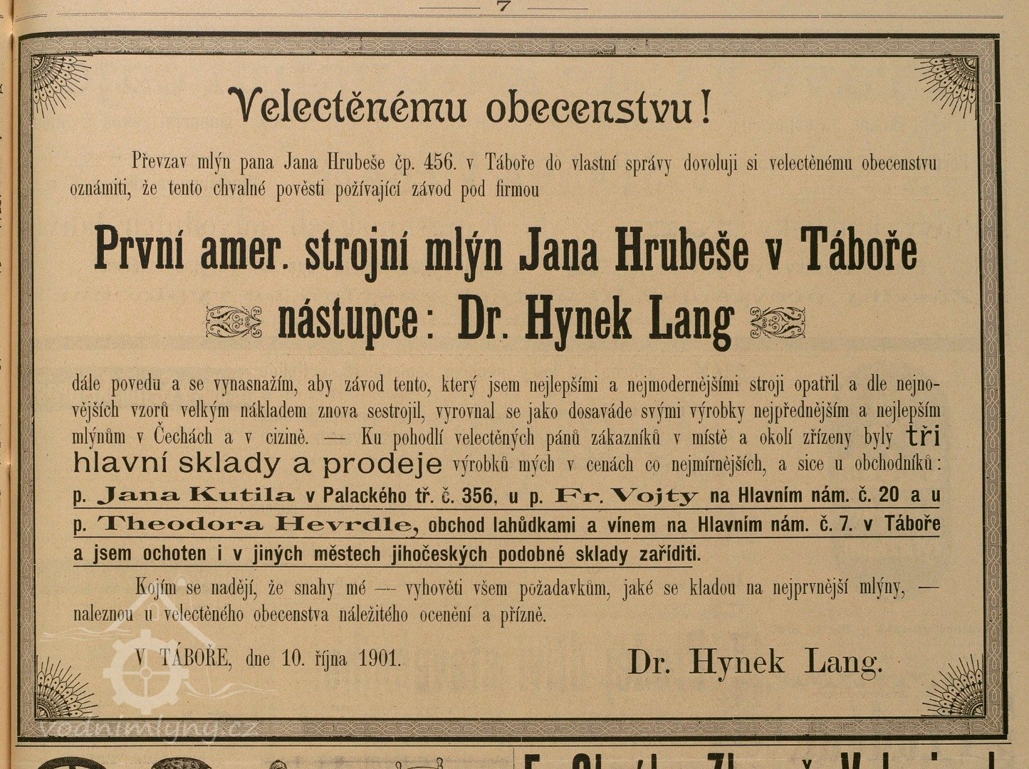 Josef Gutvald *16.6.1867, mlynářství/správce mlýna/mlýn Jana Hrubeše nást.spol. s o.r. Tábor;