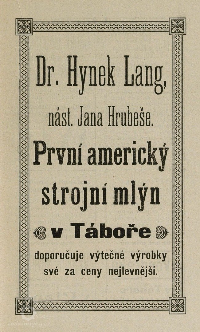Josef Pichl *22.7.1852 mlynářství/stárek/mlýn Jana Hrubeše nást.spol. s o.r. Tábor;