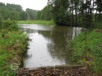 Areál bývalého mlýna s náhonem a splavem se nalézá ne levém břehu řeky Dyje, při cestě ze Starého Hobzí do Slavonic, SZ od mostu přes řeku. Mlýnský náhon na řece Dyji přivádí vodu od splavu do objektu mlýna a dále odvádí zpět do říčního koryta. Stěny náhonu jsou taraseny z kamene. Splav na řece Dyji zadržuje a přivádí vodu do mlýnského náhonu. Mlýn jest periodický s tzv. uměleckým složením, který má oddělenou mlecí část žitnou a pšeničnou.