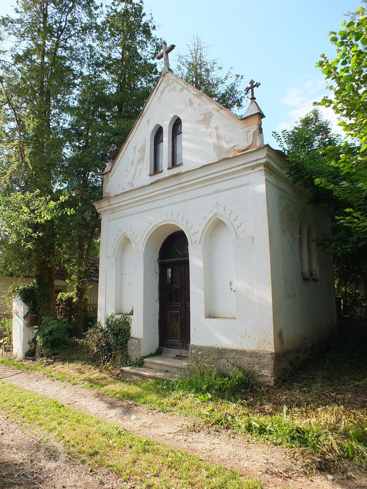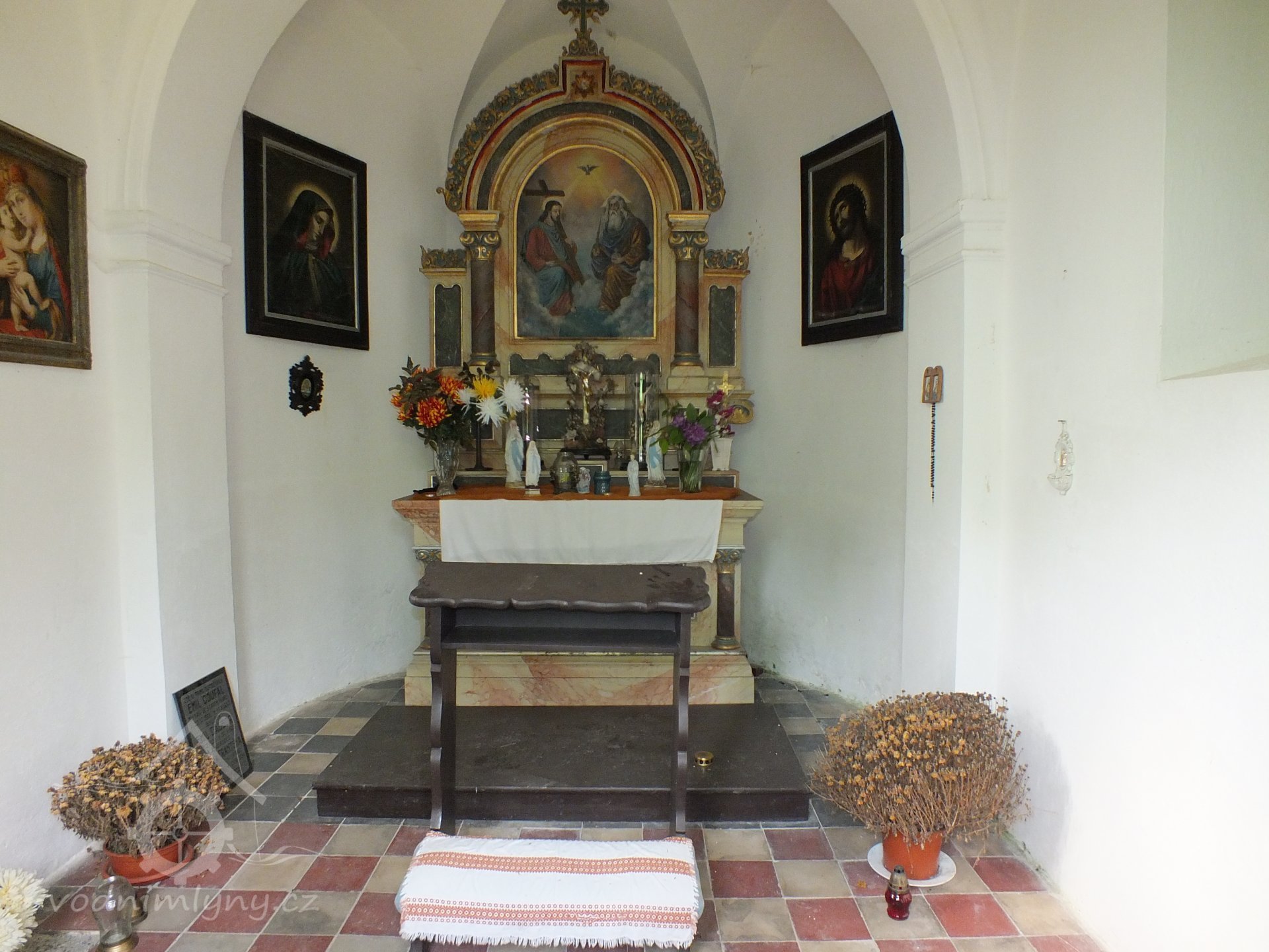 Kaple Nejsvětější Trojice byla postavena roku 1920. Ze západní strany je ohraničena zděnou podezdívkou a zděnými sloupy, mezi nimiž je napnut plaňkový plot. Jedná se o novogotickou stavbu s půlkruhově zakončeným presbytářem orientovaným k severovýchodu a sedlovou taškovou střechou. V jihozápadní průčelní zdi je umístěn půlkruhově zakončený vstup, osazený dřevěnými, dvoukřídlými dveřmi rámové konstrukce, jejichž půlkruhový nadsvětlík je vyplněn čtyřmi barevnými tabulkami skla, vytvářejícími ornament poloviny slunce. Horní polovina obou křídel vstupních dveří je prosklená a opatřena ozdobnou kovanou mříží. Po obou stranách hlavního vstupu jsou prolomeny niky s lomeným obloukem. Oblouky všech tří otvorů jsou lemovány linií téhož štukového dekoru — křížku. V západní i východní obvodové zdi je prolomeno po jednom sdruženém novogotickém oknu, jehož ozdobné štukové lemování v horní části dosedá na hlavice štukových sloupků. Fasáda obvodové zdi je hladce štukově omítnuta, s jemným členěním do lizénových rámů, a zakončena mohutnou odstupňovanou korunní římsou. Jihozápadní průčelí je zakončeno štítem, jenž má po stranách dvě malé věžičky s plechovou stříškou a kovovým křížem. Plocha štítu je hladká, štuková a uprostřed prolomena dvěma vysokými úzkými okny, zakončenými lomeným obloukem. Ve vrcholu štítu je vztyčen ozdobný kříž.