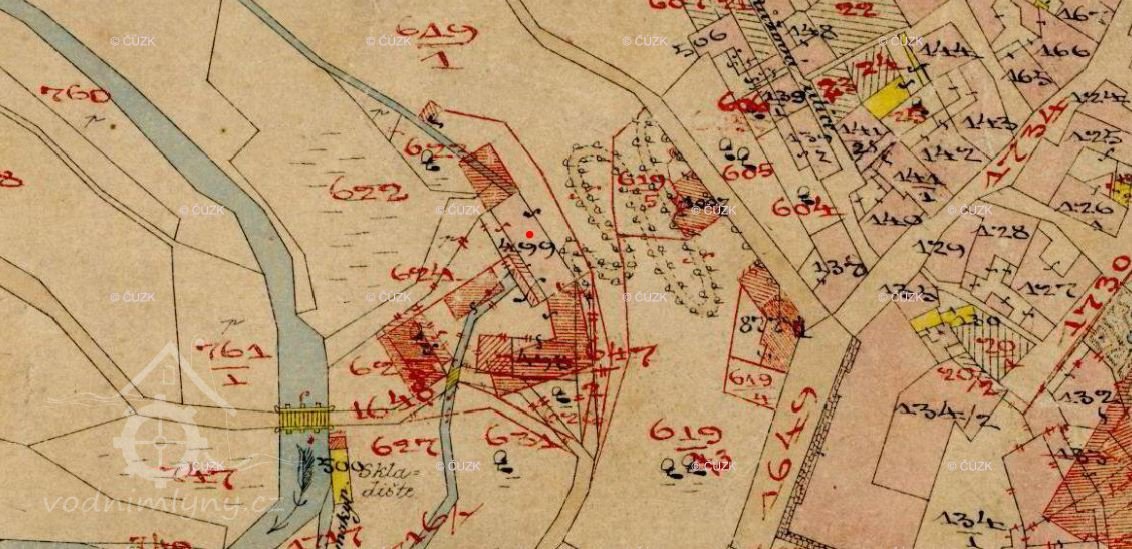 Popis1930: 1 kolo na svrchní vodu, hltnost 0,147 m3/s, spád 6,75 m, výkon 8,6 HP