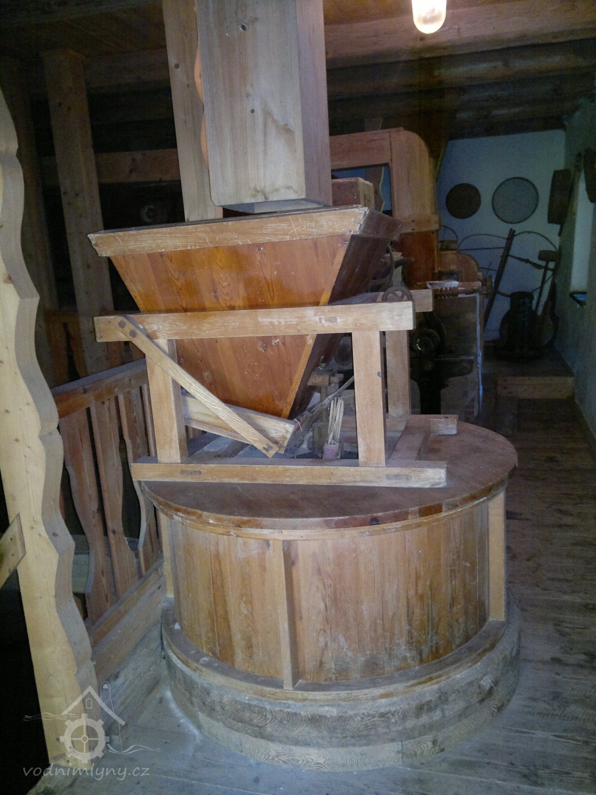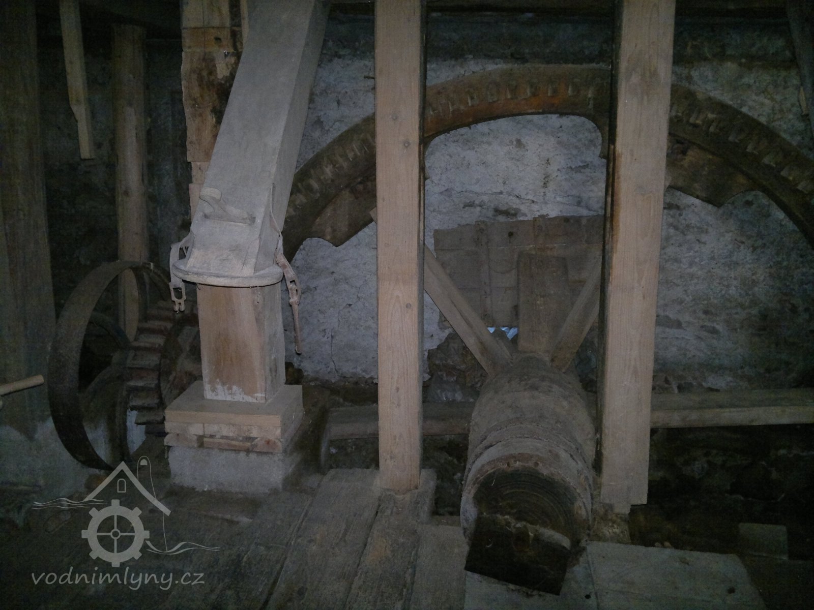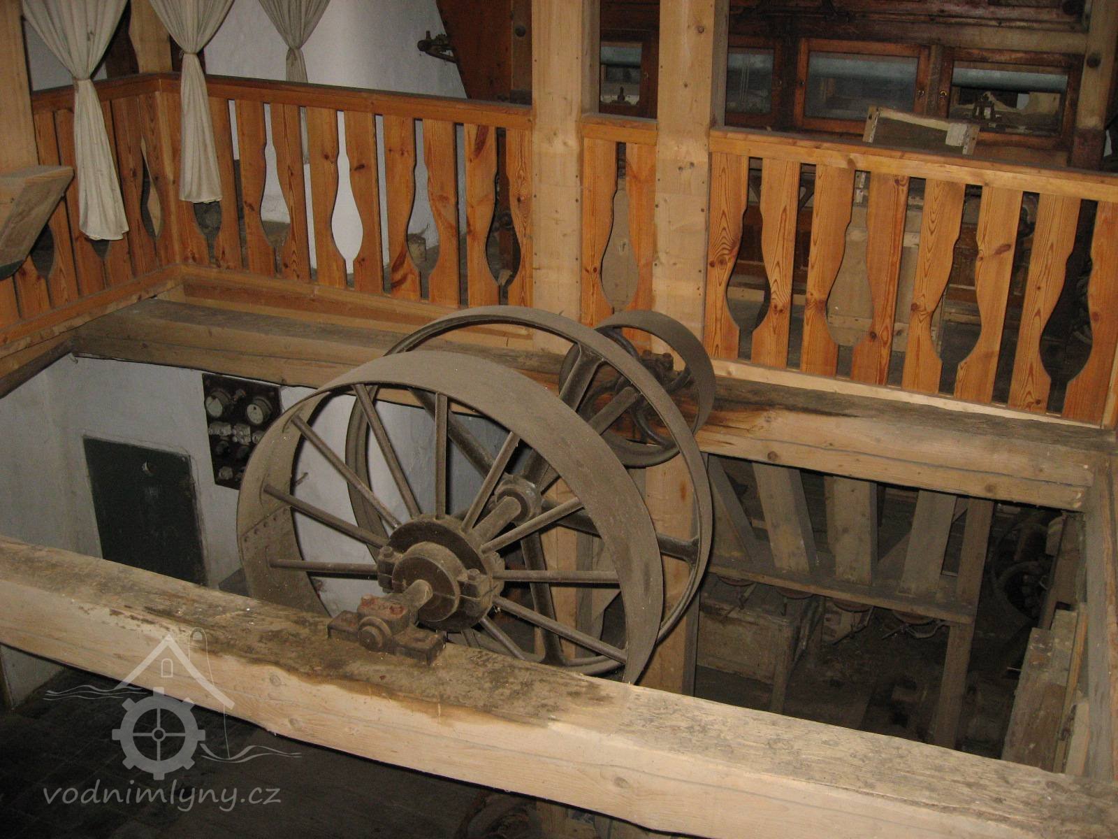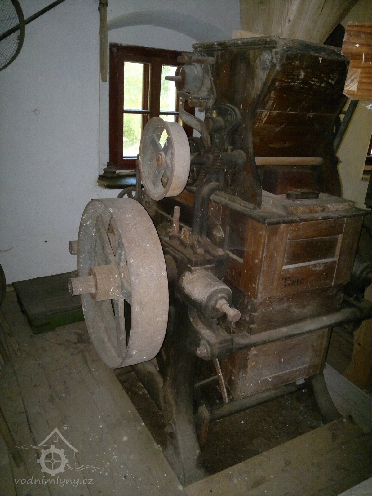 Původně zde byla 3 celodřevěná vodní kola na vrchní vodu. Dvě poháněla složení mlýna, třetí stoupu. Později byla stoupa odstraněna a dochoval se jen její fragment (sloupy, kamenný štok). Dřevěné hřídele vodních kol procházejí do podkolí, na nichž jsou dvě paleční kola. Původně roztáčela tzv. obyčejná kamenná mlecí složení, avšak v průběhu modernizace mlýna došlo na začátku 20. stol. k osazení strojního zařízení (umělecké válcové složení). Jedno paleční kolo roztáčelo přes litinový pastorek a řemenici předlohovou transmisi k pohonu dynama a šrotovníku. Druhé paleční kolo též přes pravoúhlý převod za pomoci litinového pastorku, hřídele a řemenice otáčelo hlavní transmisí umístěnou v ložiskách na trámech 1. podlaží. Od transmise byly přes ploché kožené řemeny hnány jednotlivé mlýnské stroje. Zachována původní mlýnská hranice dvojnásobná s dřevěnými sloupy a kamennou dvojicí sloupů vpravo. Datace na kamenném sloupu r. 1796. V podkolí se kromě zmíněného převodového soukolí, mlýnské hranice a stoupy nachází též pytlovací lávka od reformy, elektrorozvodná deska a paty kapsových dopravníků. Stojí zde také vzácně dochovaná moučná truhla, jenž je pravděpodobně pozůstatkem obyčejného složení. Na prvním podlaží nalezneme vzácnou archaickou válcovou mlecí stolici od fa J. Hűbner a K. Opitz - Pardubice z roku 1890 s rýhovanými válci a dřevěnou skříní. Mezi vzácně dochované se řadí i loupačka z počátku 20. stol. od fa J. Prokop – Pardubice, reforma starého sytému na čištění a třídění krupic taktéž z počátku 20. stol., válcová stolice s porcelánovými válci na luštění krupic a dřevěnou skříní od fa Friedrich Wegmann – Zűrich z konce 19. stol., kamenné mlecí složení (stolice Wegmann a kamenné mlecí složení zachráněny před likvidací a převezeny z nedalekého Bělkovského mlýna) a nakonec šrotovník od fa Jindřich Světnička – strojírna na stavby mlýnů Strměchy u Pelhřimova z 20. let 20. stol. K reformě je filtr typu autokap. Všemi podlažími prochází několik kapsových dopravníků. Na druhém podlaží a v podstřeší je umístěn hranolový vysévač moučný s pytlovací lávkou, hranolový předvysévač, čistící stroj, trieur (koukolník), hlavy kapsových dopravníků a horní transmise. Strojní vybavení odpovídá malému vesnickému mlýnu s jednou válcovou stolicí. Zařízení je dochováno ve velmi pěkném stavu nikterak narušené novodobými úpravami. Mlýn se řadí mezi nejvzácněji dochované komplety na území ČR.