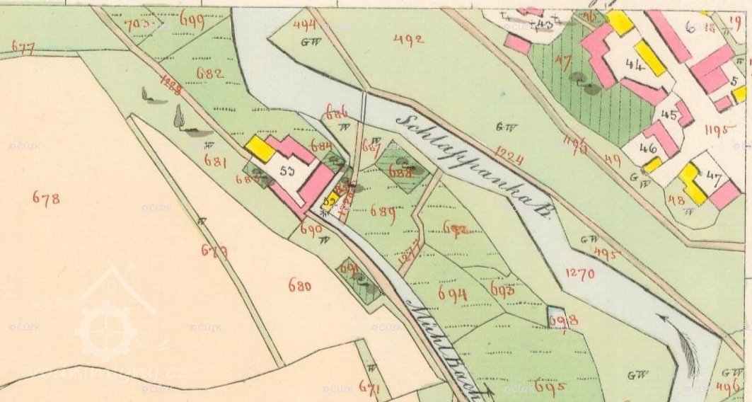 V roce 1930 byl majitelem mlýna a pily Václav Frühauf.
