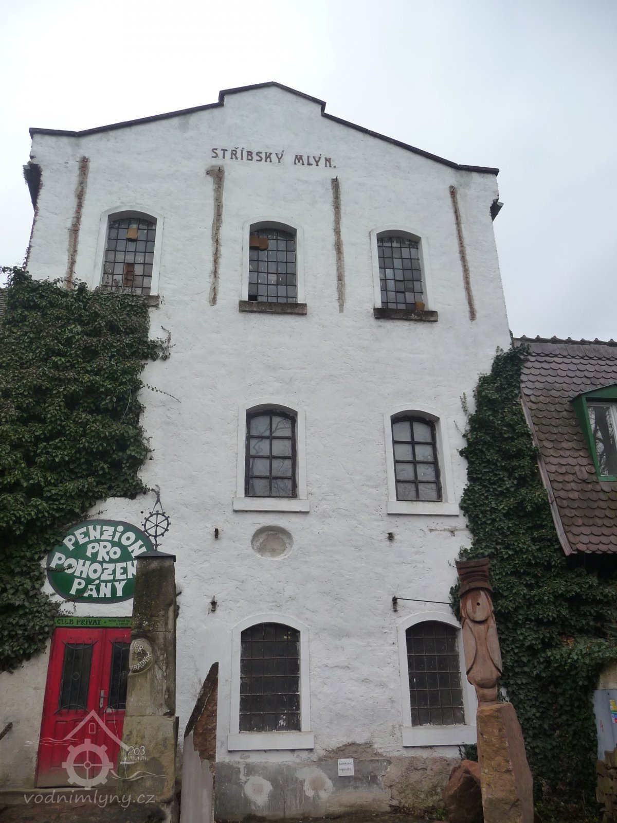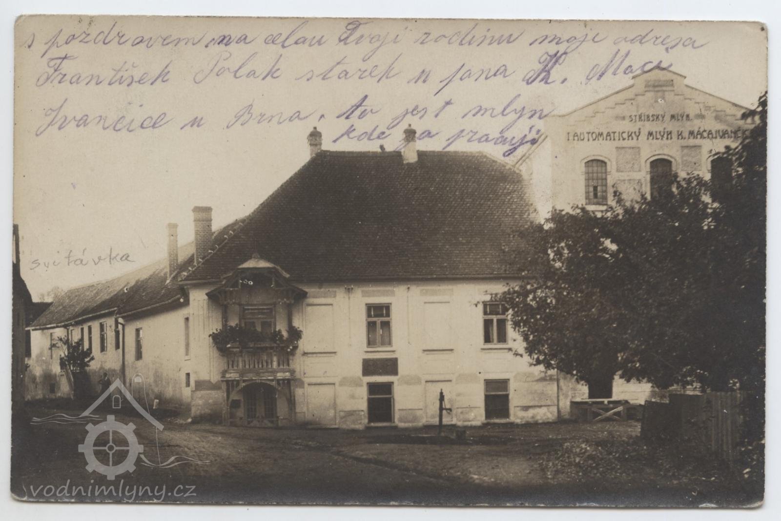 Na štítě mlýna nápis s názvem